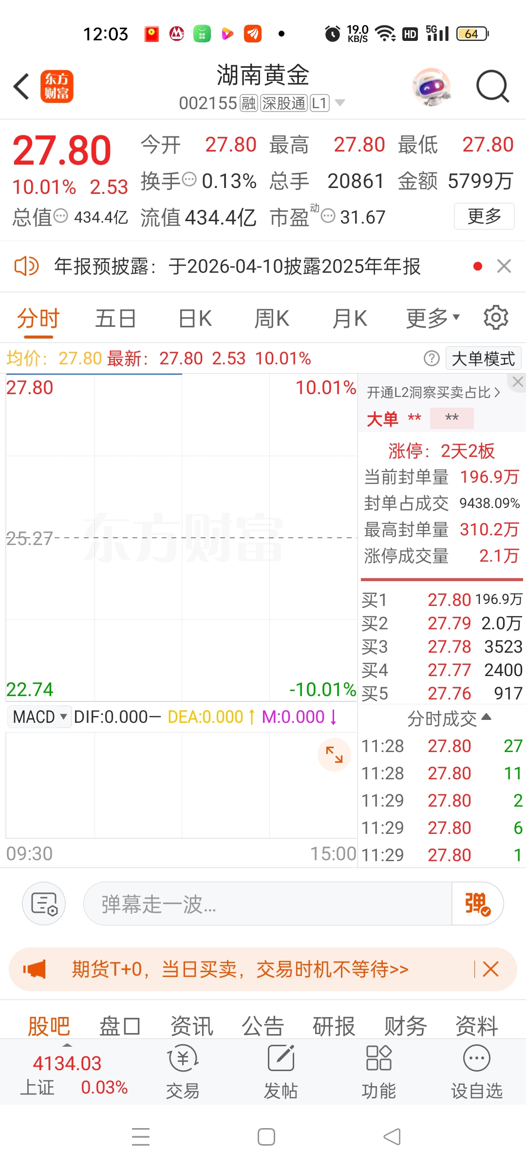 湖南黄金涨停了