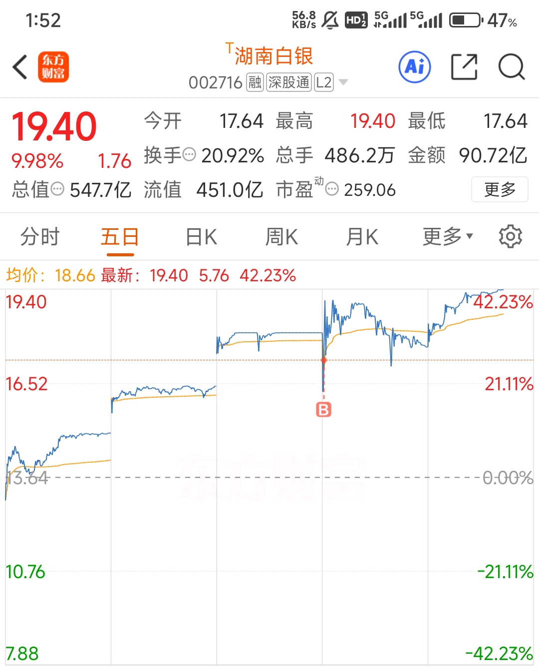$湖南白银(SZ002716)$ 昨天买的时候手都是抖的……太刺激了