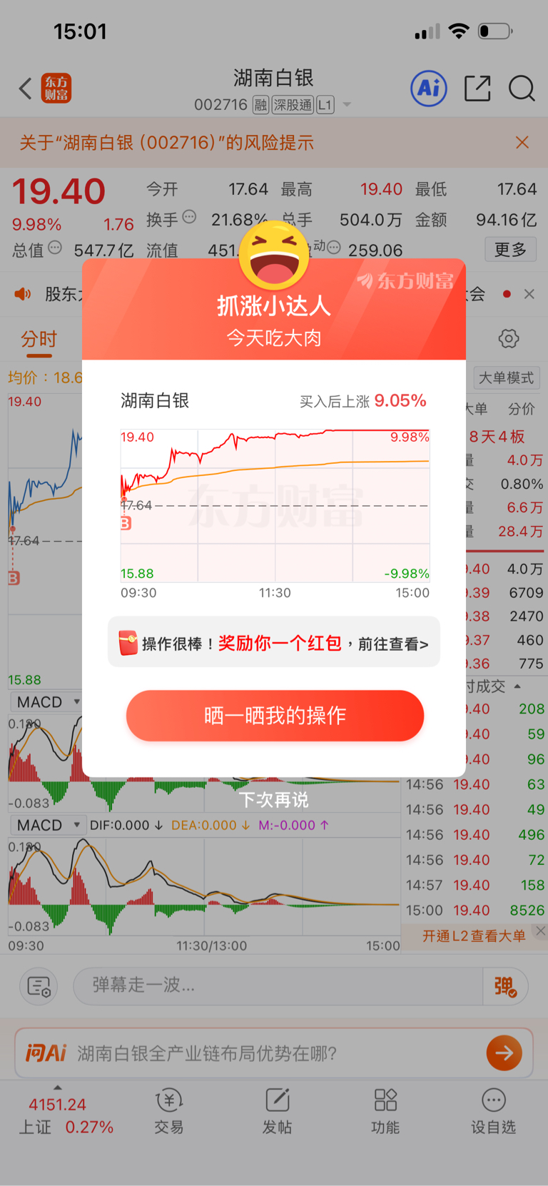 $湖南白银(SZ002716)$ 来人陪我拆红包