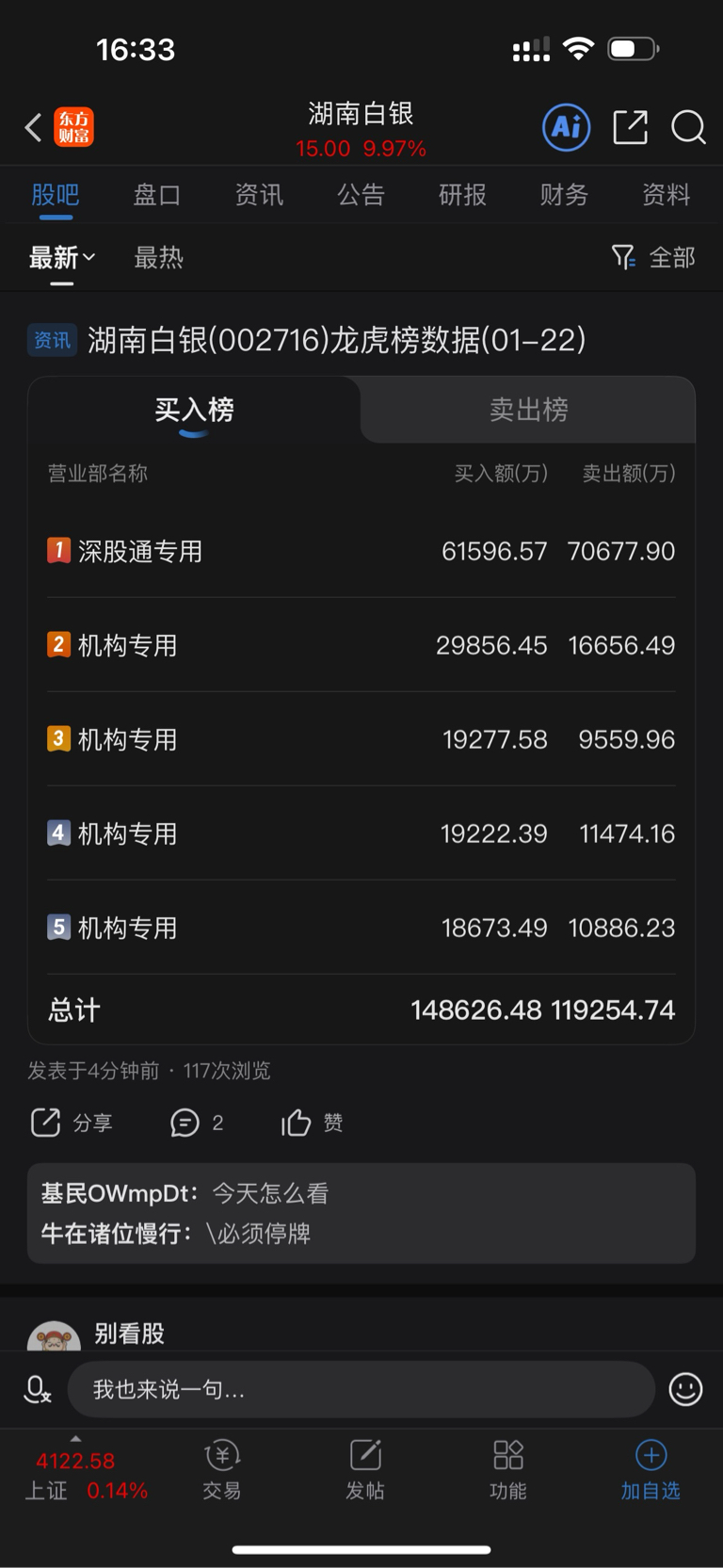 温馨提示: 1.根据《证券法》规定,禁止编造、传播虚假信息或者误导性信息,扰乱证券市场;2.用户在本社区发表的所有资料、言论等仅代表个人观点,与本网站立场无关,不对您构成任何投资建议。用户应基于自己的独立判断,自行决定证券投资并承担相应风险。《东方财富社区管理规定》