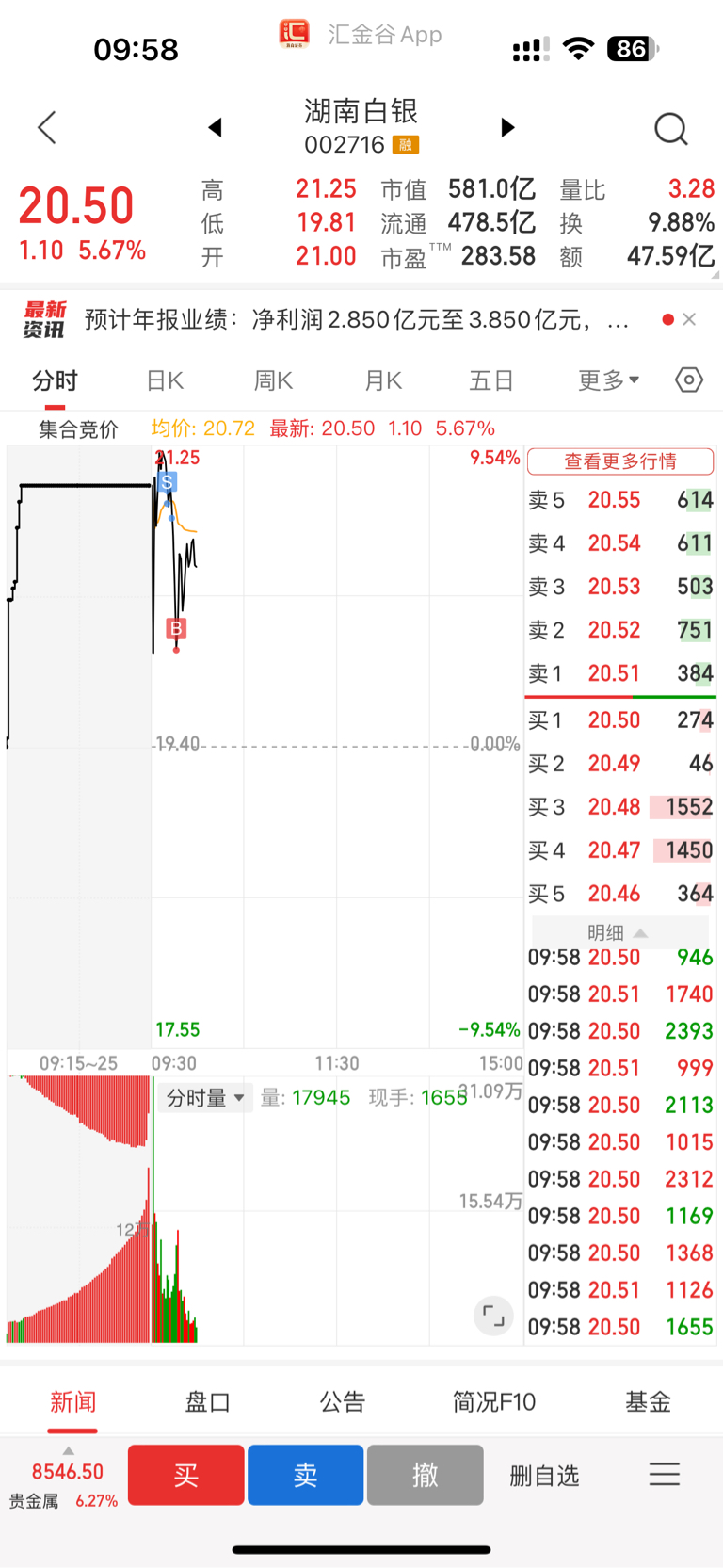 $湖南白银(SZ002716)$ 这一波怎么样 虽然没卖在最高点 但是精准买在最低了 嘿嘿