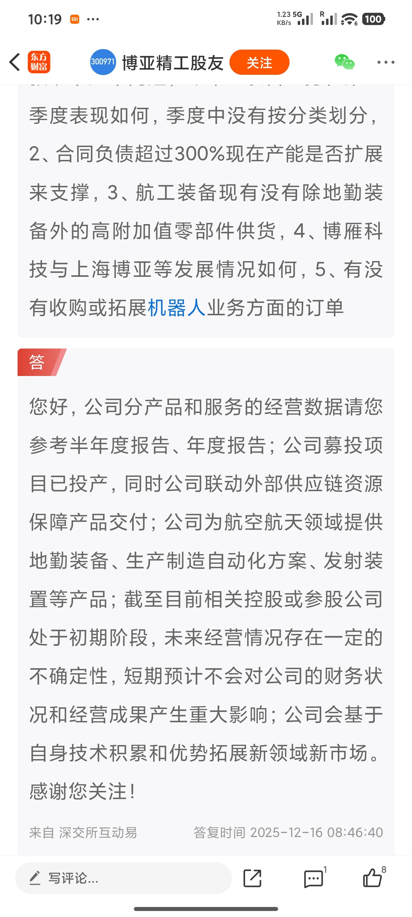 $湖南白银(SZ002716)$ 又发现一只价低业绩好的商业航天微盘股,博亚精工,为中航工业集团提供地勤装备,发射装置等,业绩更是大增,市盈率才20多。