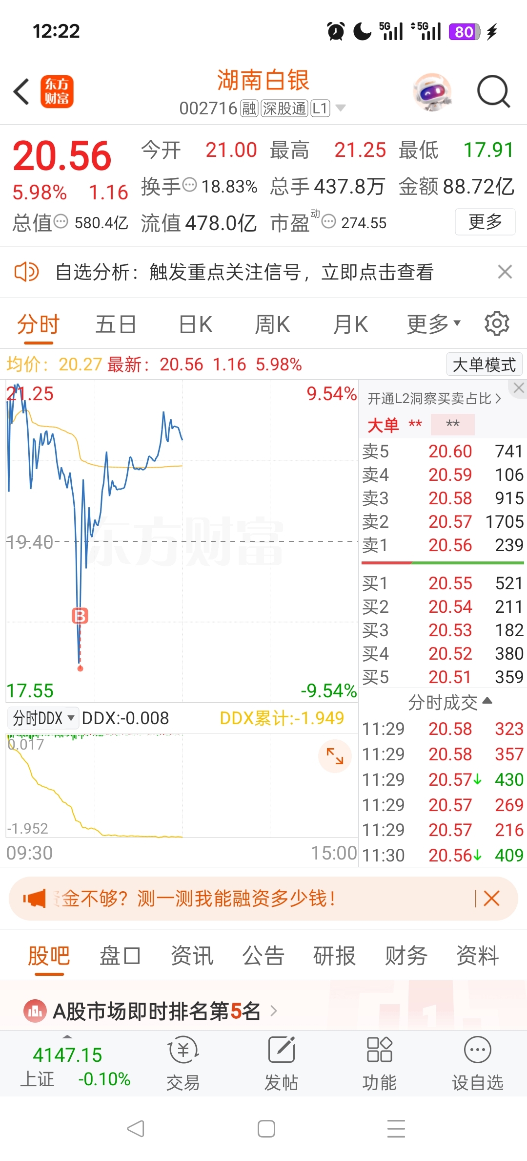 $湖南白银(SZ002716)$ 17.94v起来的,今天能不能吃肉
