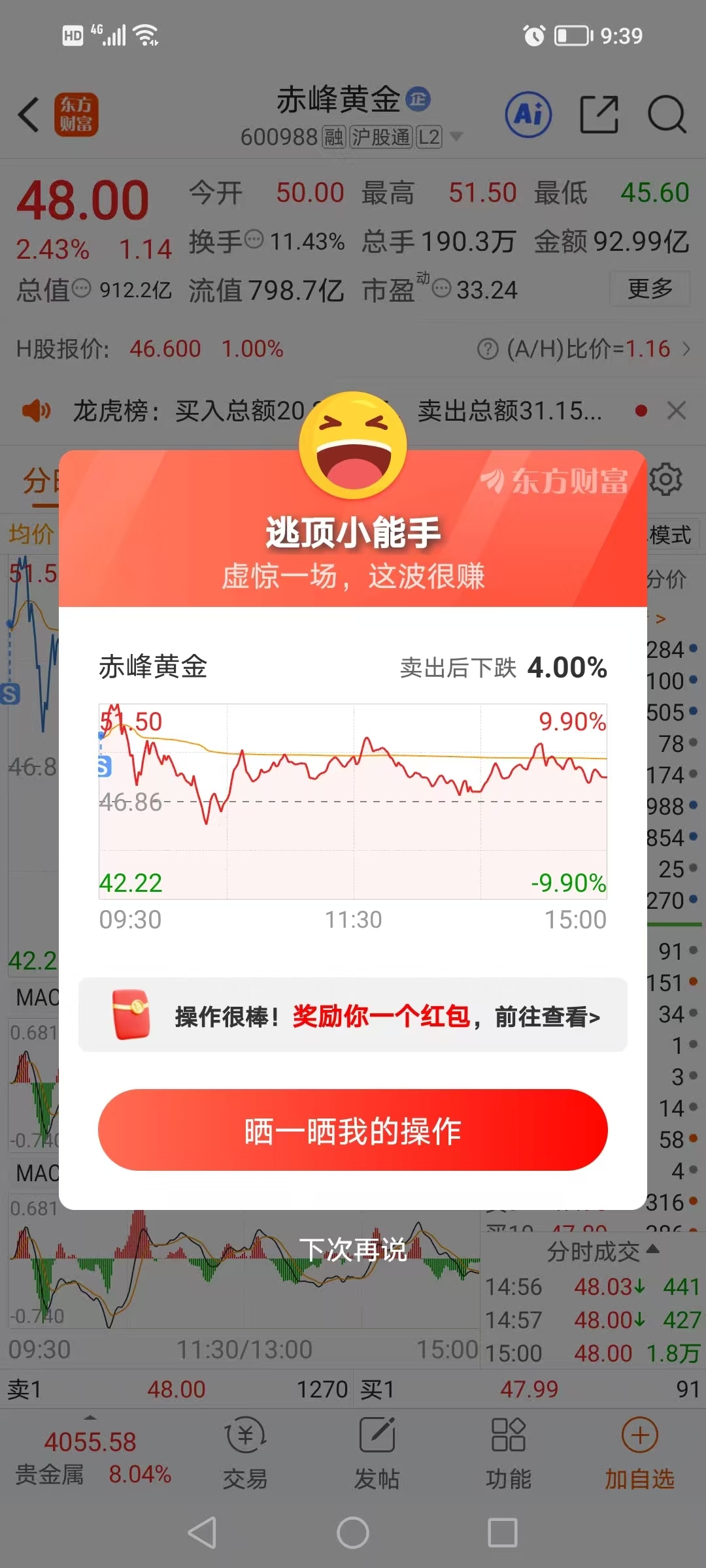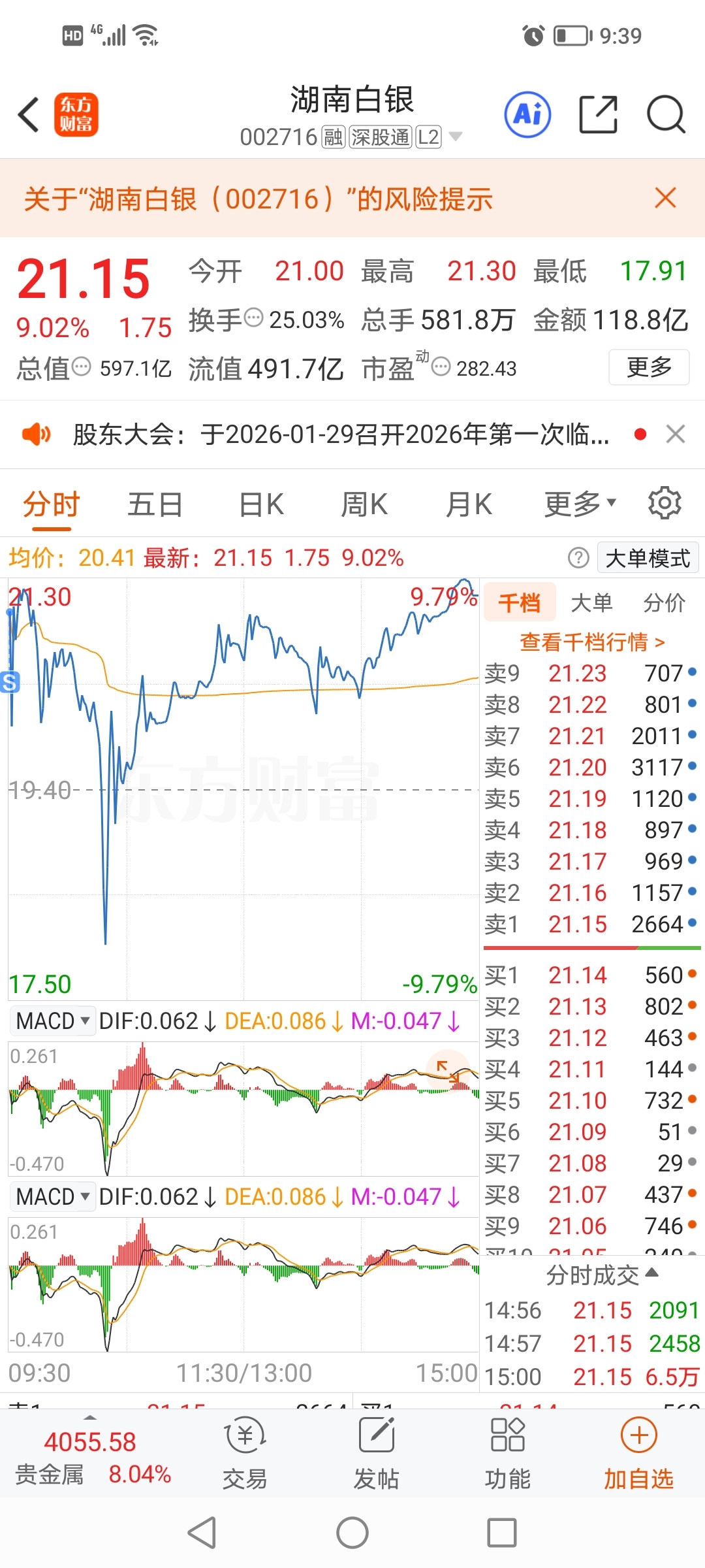湖南白银和赤峰黄金到达猫哥预定止盈点,猫哥已经清仓于今日集合竞价!