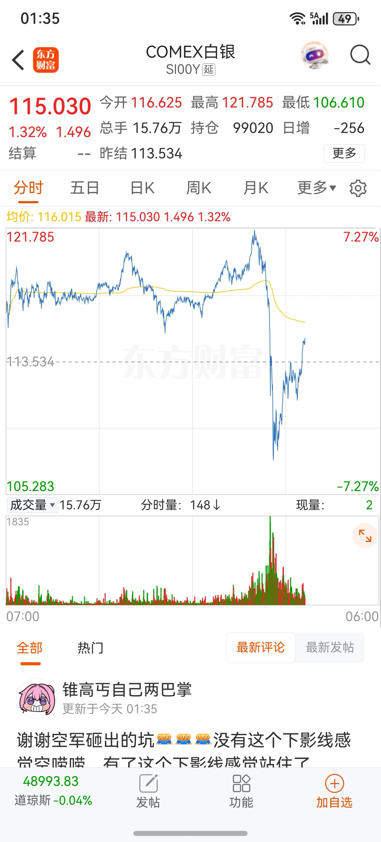这白银也太疯狂了吧!根本砸不下来,又拉回去变红了。太牛逼了。