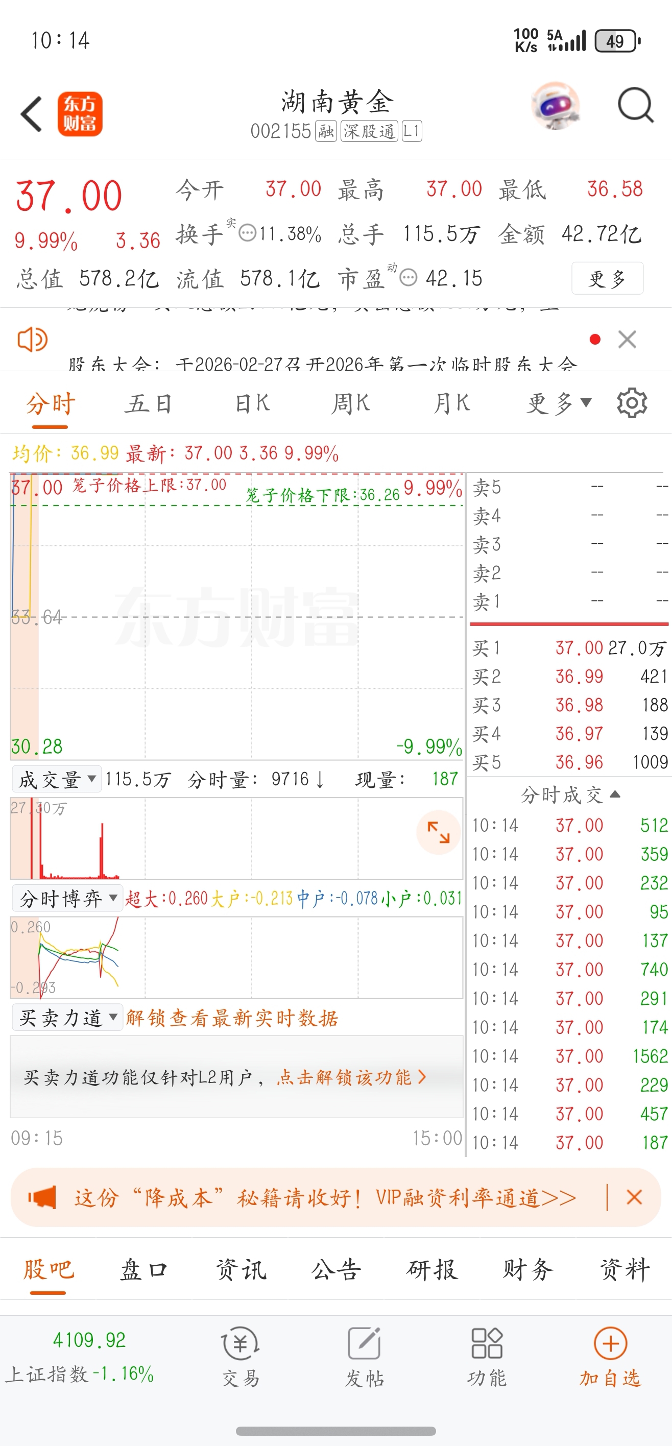 湖南黄金涨停了