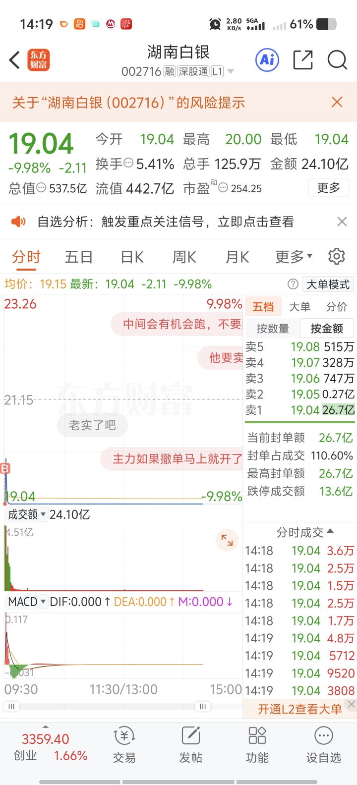 $湖南白银(SZ002716)$ 都跑了?有没有和我一样进来的,来聊聊下周还能不能再抄底几个跌停板