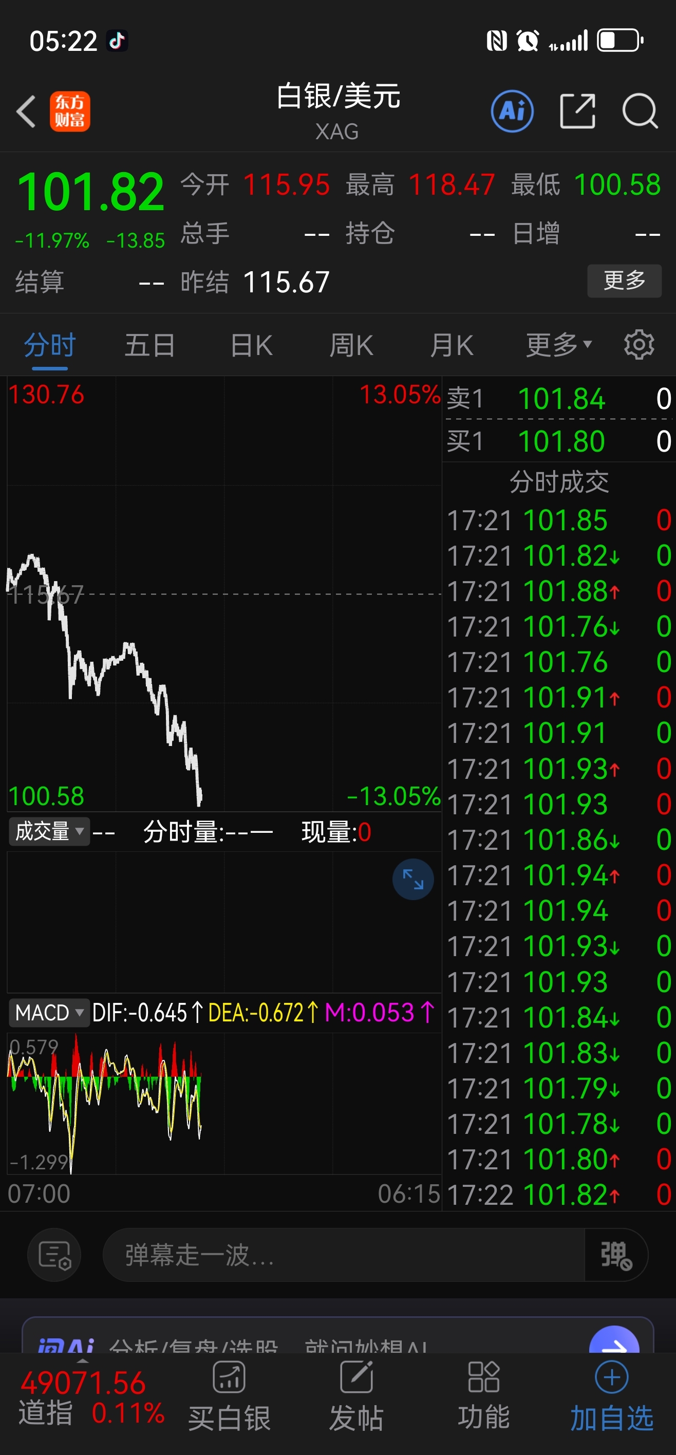 下周一字跌停了。3点后白银又跌了6个点现在跌12个点了