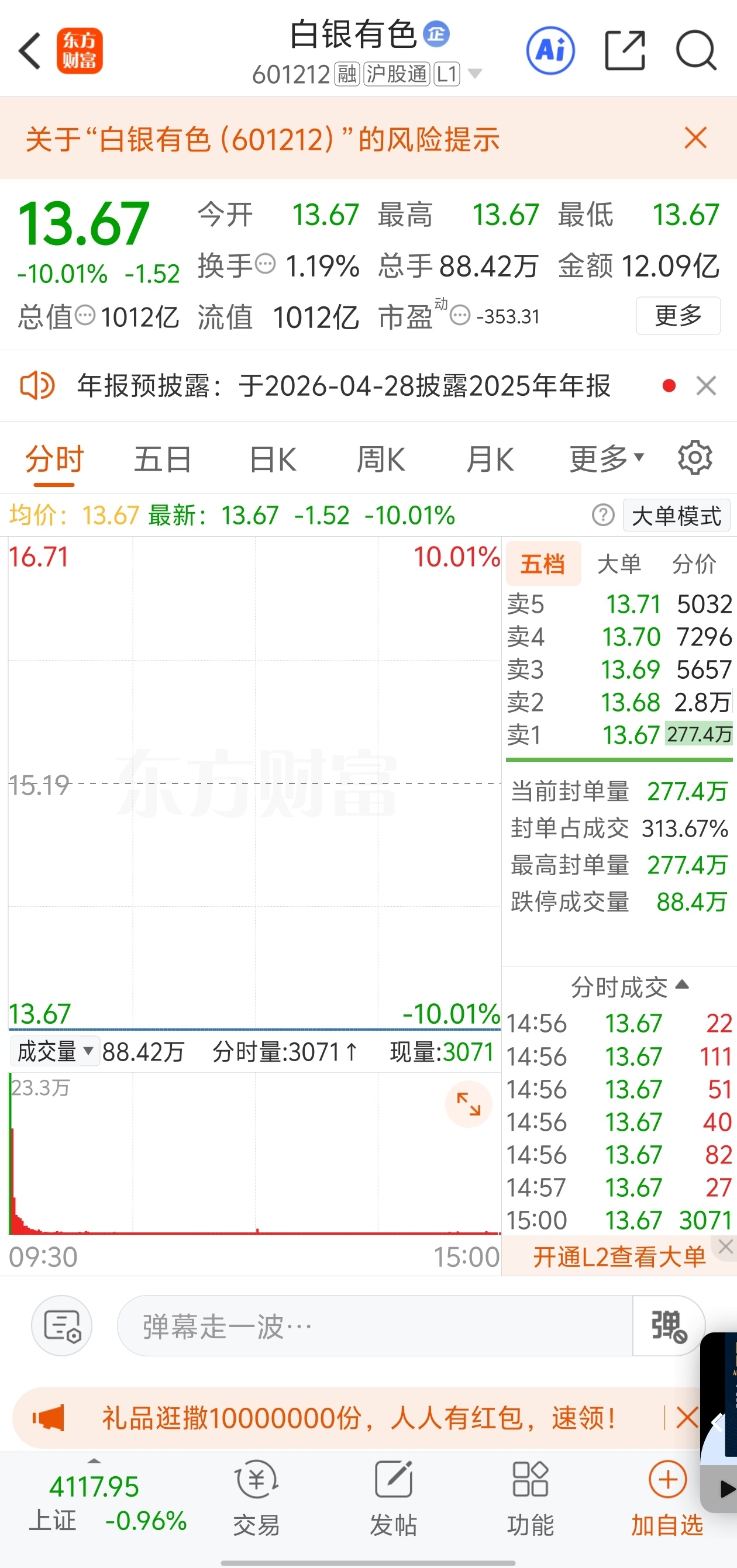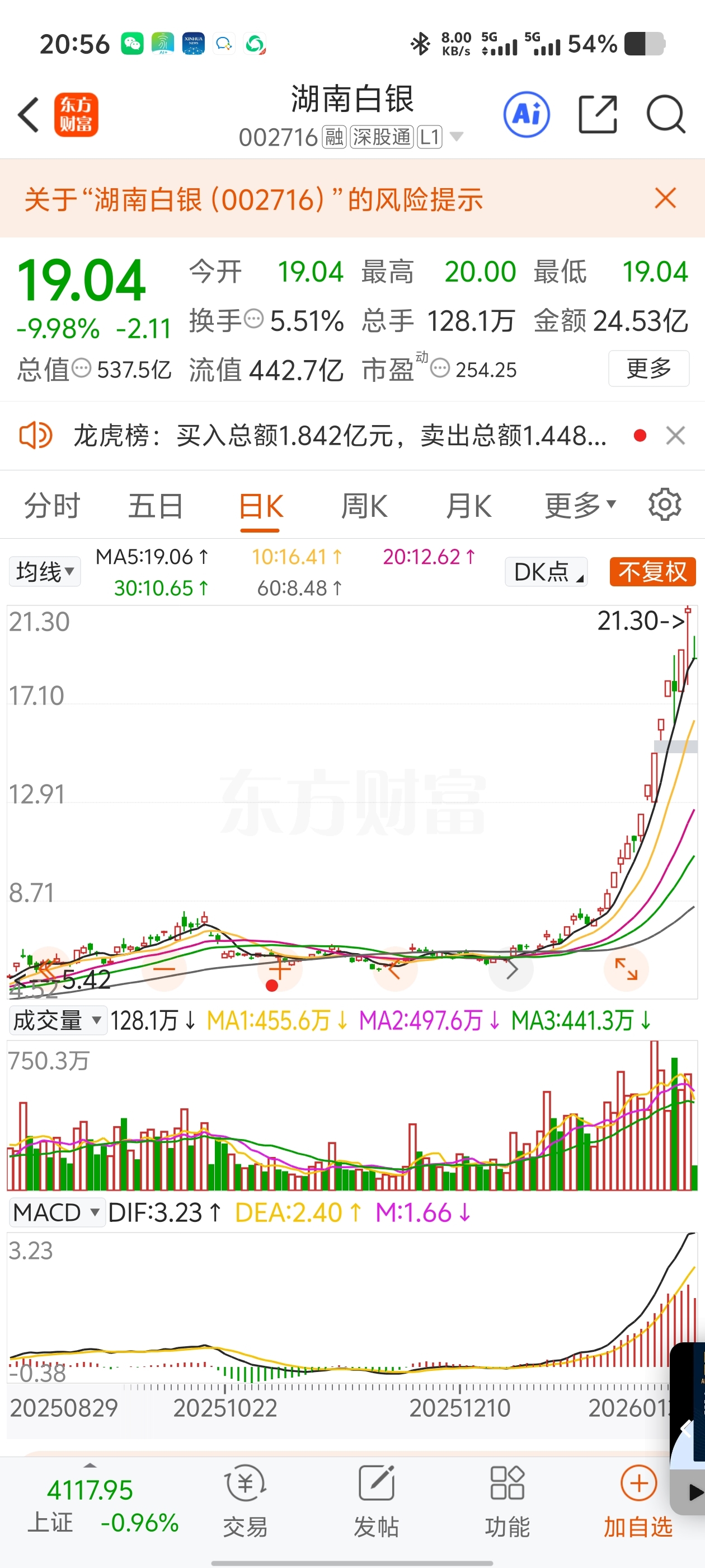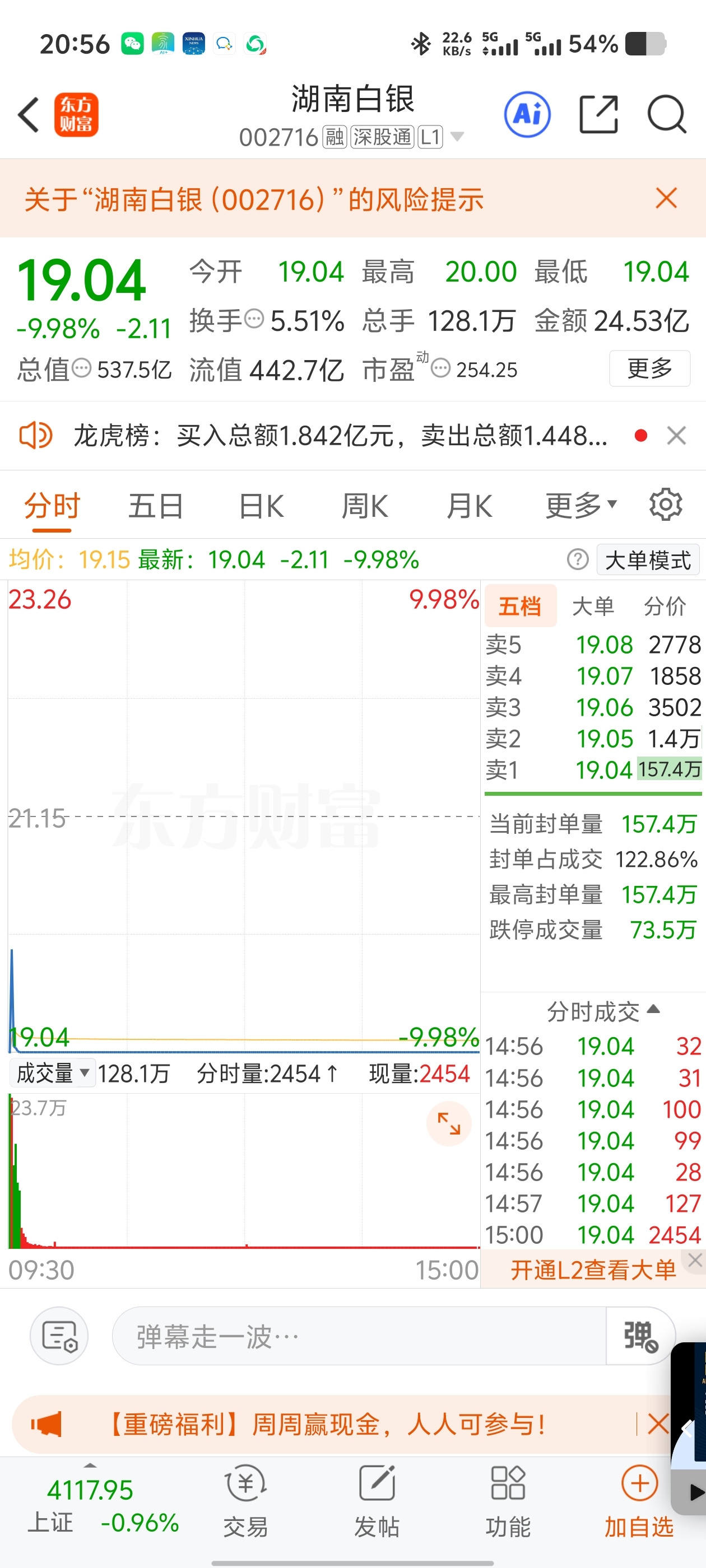 湖南白银和白银有色都是核按钮啊,这种时候真的没人敢接。走到最后,都是情绪了,越不