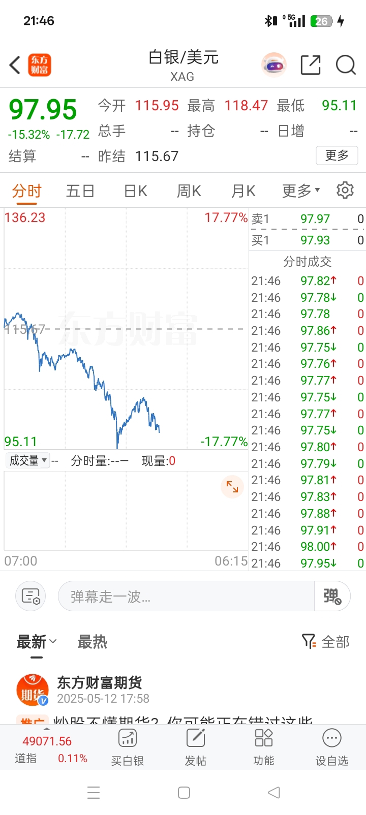 $湖南白银(SZ002716)$ 兄弟有个好消息告诉大家,白银跌破90元了,周一能抄底了