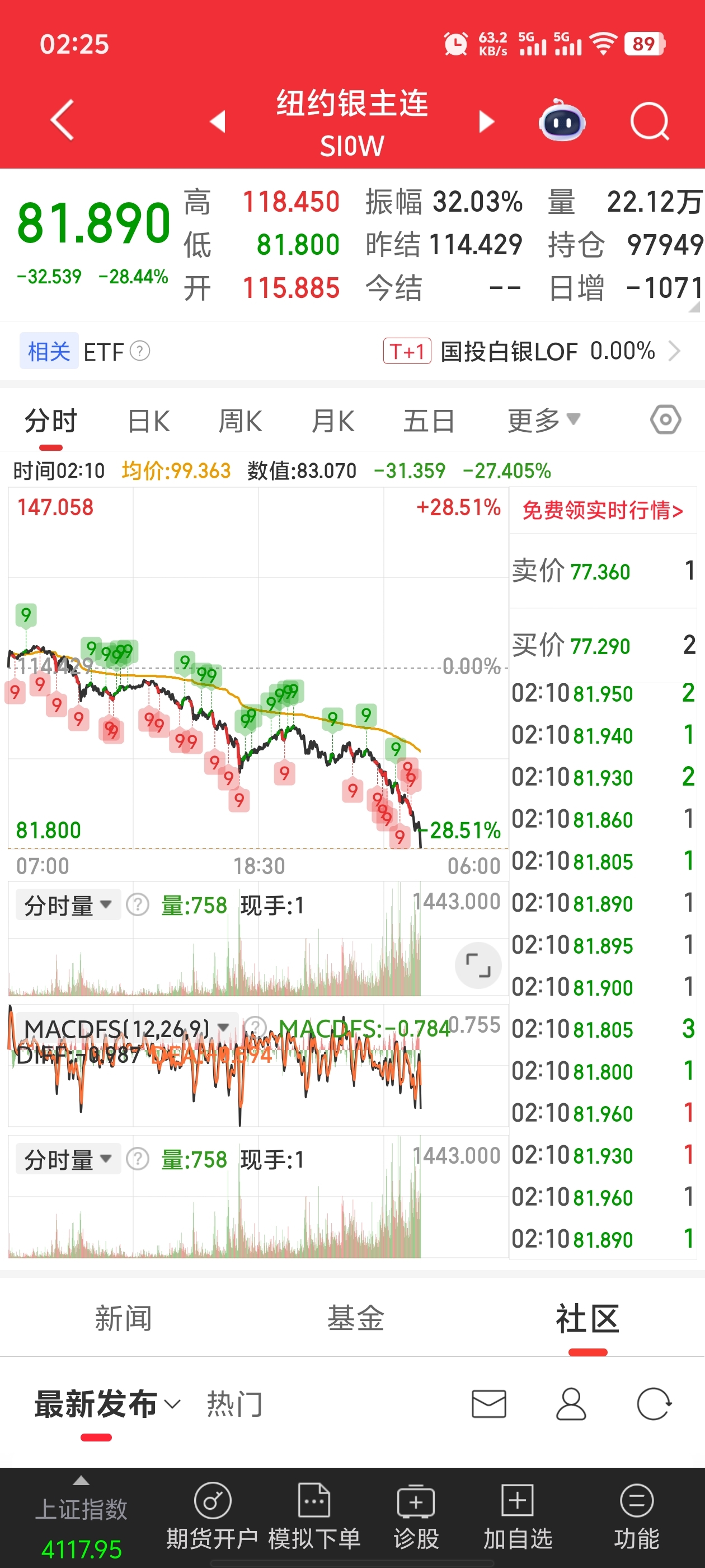 $湖南白银(SZ002716)$ 星期一封单超大了期货跌了三十个点。