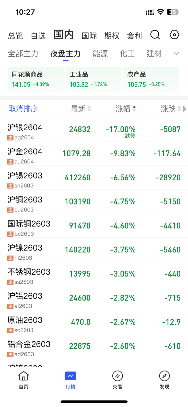 $湖南白银(SZ002716)$ 大家改吃吃改喝喝,再怎么看评论焦虑也没有用。这波三个跌停都出不来,各位庆幸是股票,白银期货跌十个点直接爆仓本金归零,这波跌停-17个点,多少人一夜之间穿仓还倒欠期货公司十几万