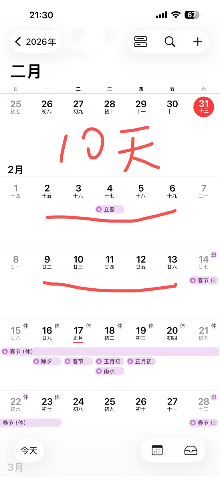 离过年还有10个交易日,正好10个一字跌停。过年前一天开门放大家回家过年。
