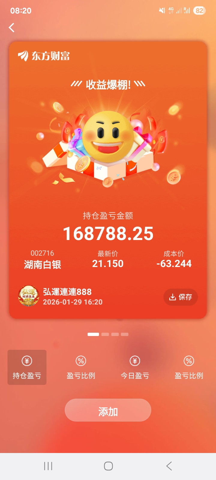 湖南白银股票收割的利益,马上买了100克如意积存金,慢慢积存,到时去实物出来。