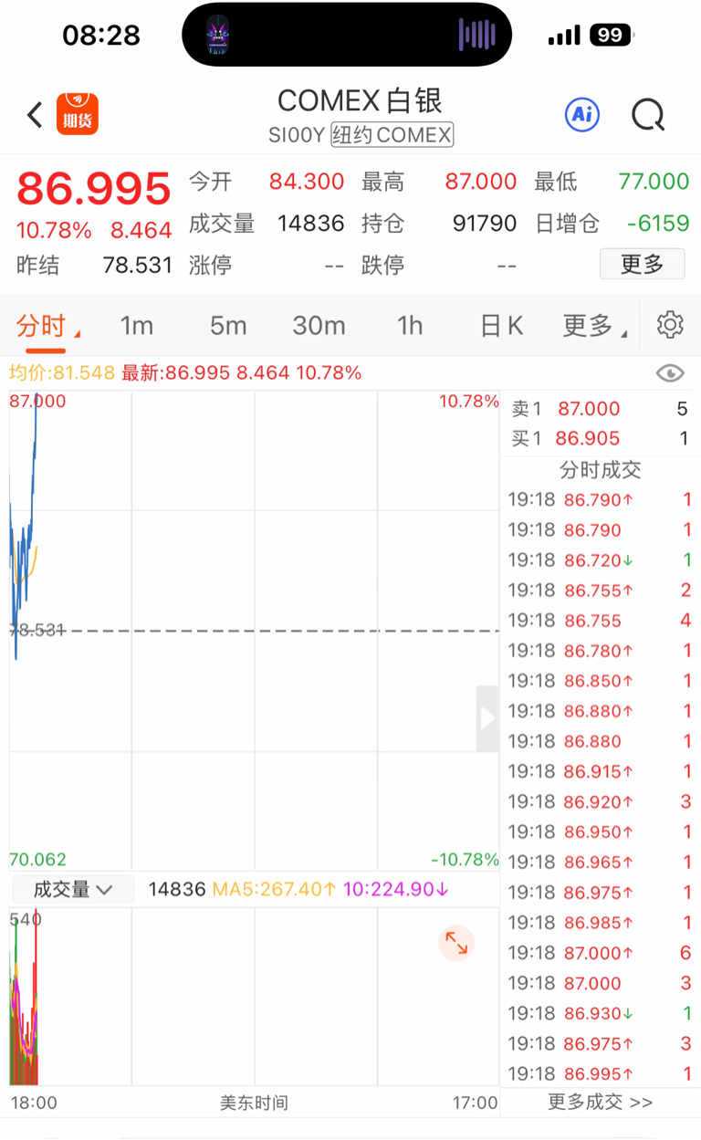 $湖南白银(SZ002716)$ 国际白银大涨,两级反转,撤单了,曹