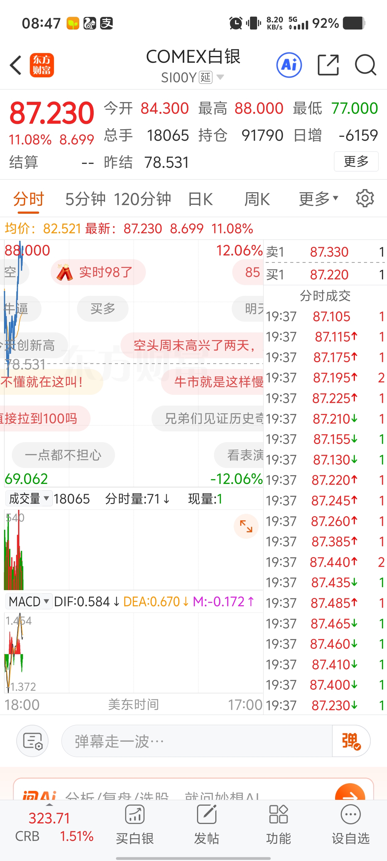 $湖南白银(SZ002716)$ 白银期货暴涨