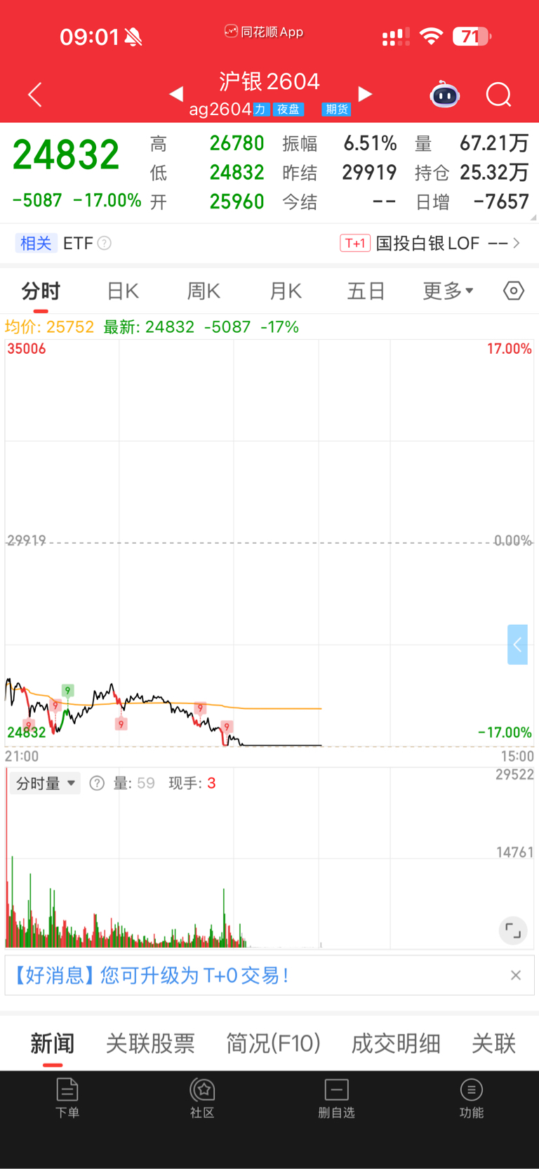 $湖南白银(SZ002716)$ 不想打击大家,不要被纽约金给误导了,看看国内沪银主力合约,已经跌停了
