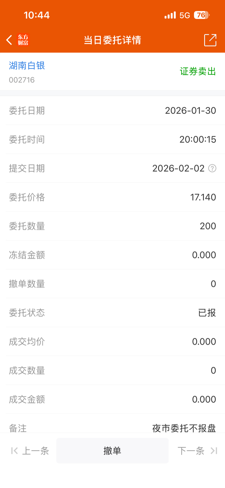 $湖南白银(SZ002716)$ 各位周五挂的隔夜单出了吗,我周五八点挂的到现在没出去
