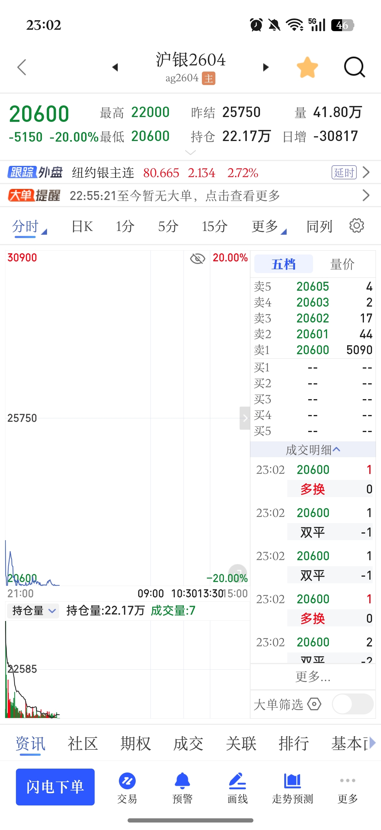 $湖南白银(SZ002716)$ 期货跌停了!明天肯定跑不出去了