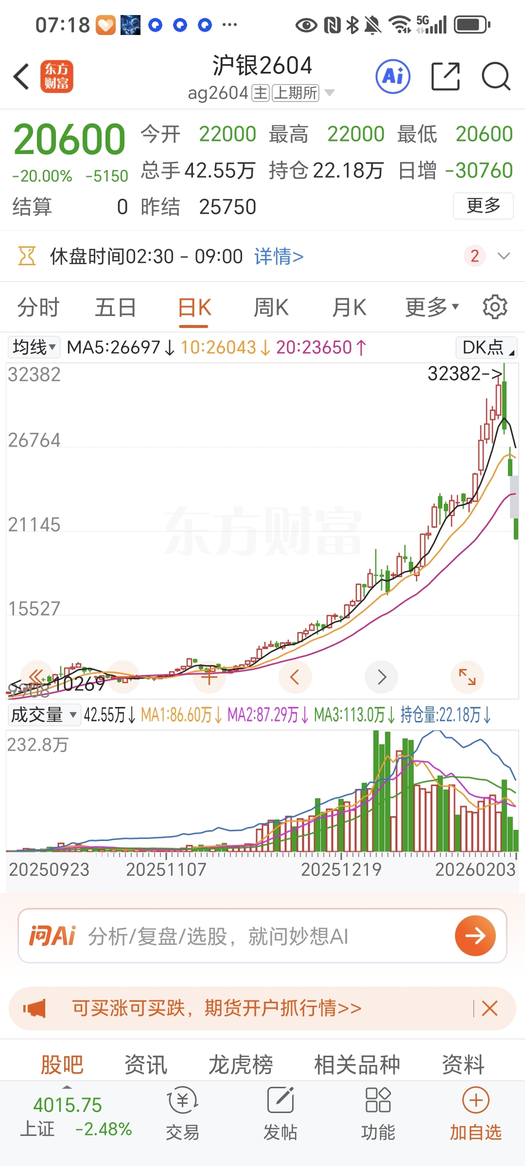 沪银跌停,抢跑吧