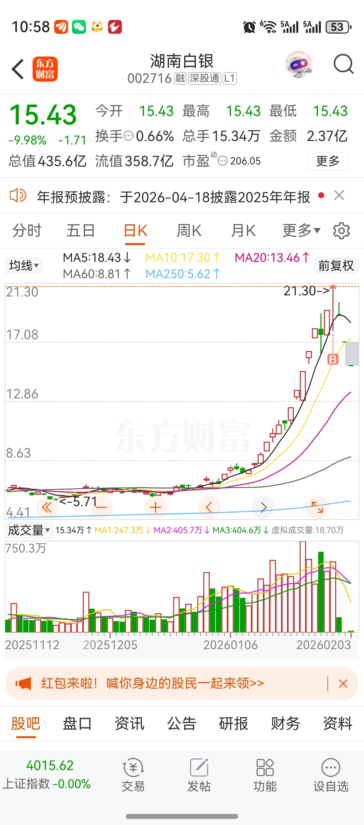 $湖南白银(SZ002716)$ 惨不惨?虽然只买了100股试试,但也要亏掉半头猪钱了。