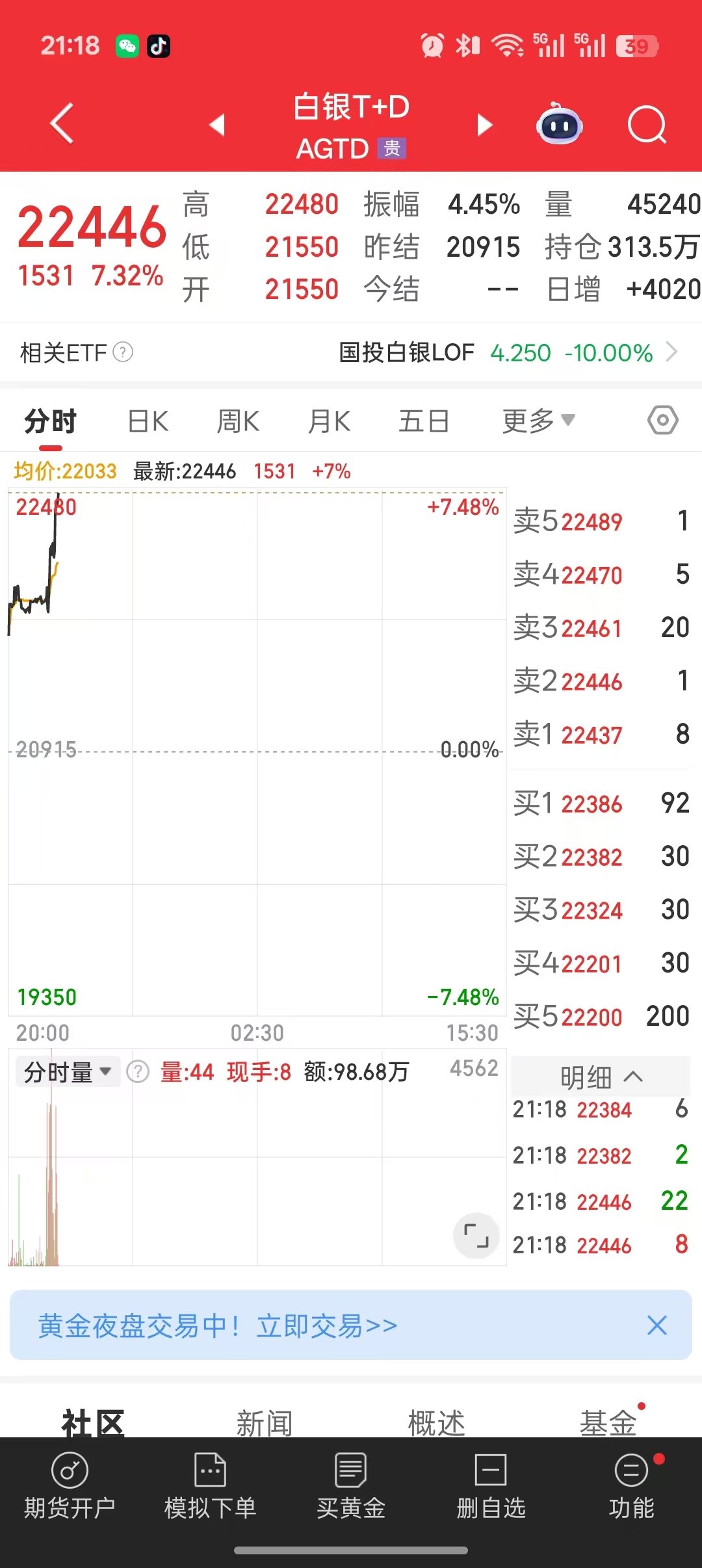 白银反弹力度还可以,看来周三湖银不会再跌了