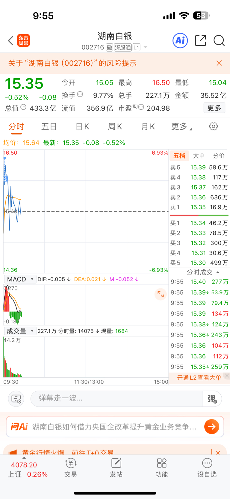 $湖南白银(SZ002716)$ 感谢主力赚8个点跑路了