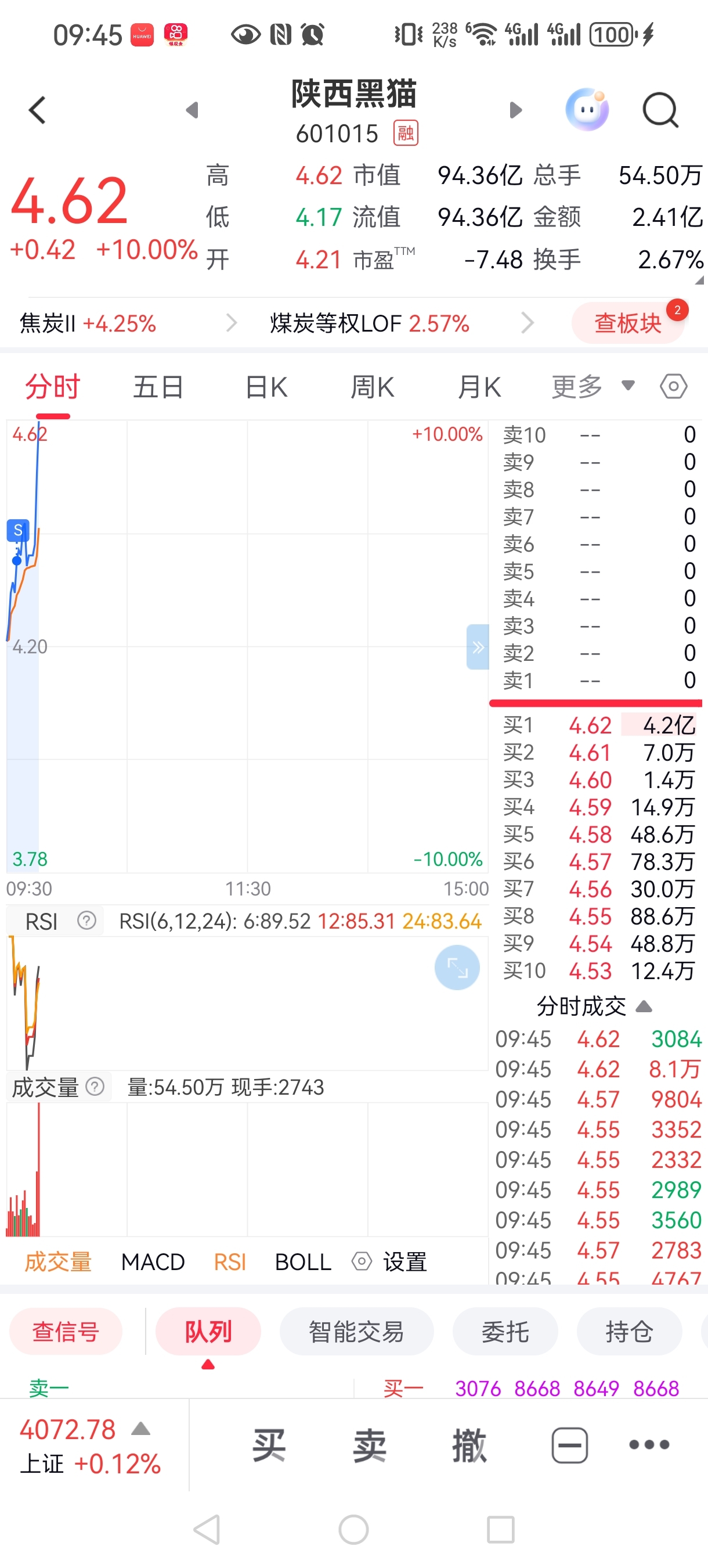 一般我卖了的票都会涨停!开盘卖慢了湖南白银陕西黑猫美锦能源卖了就涨停