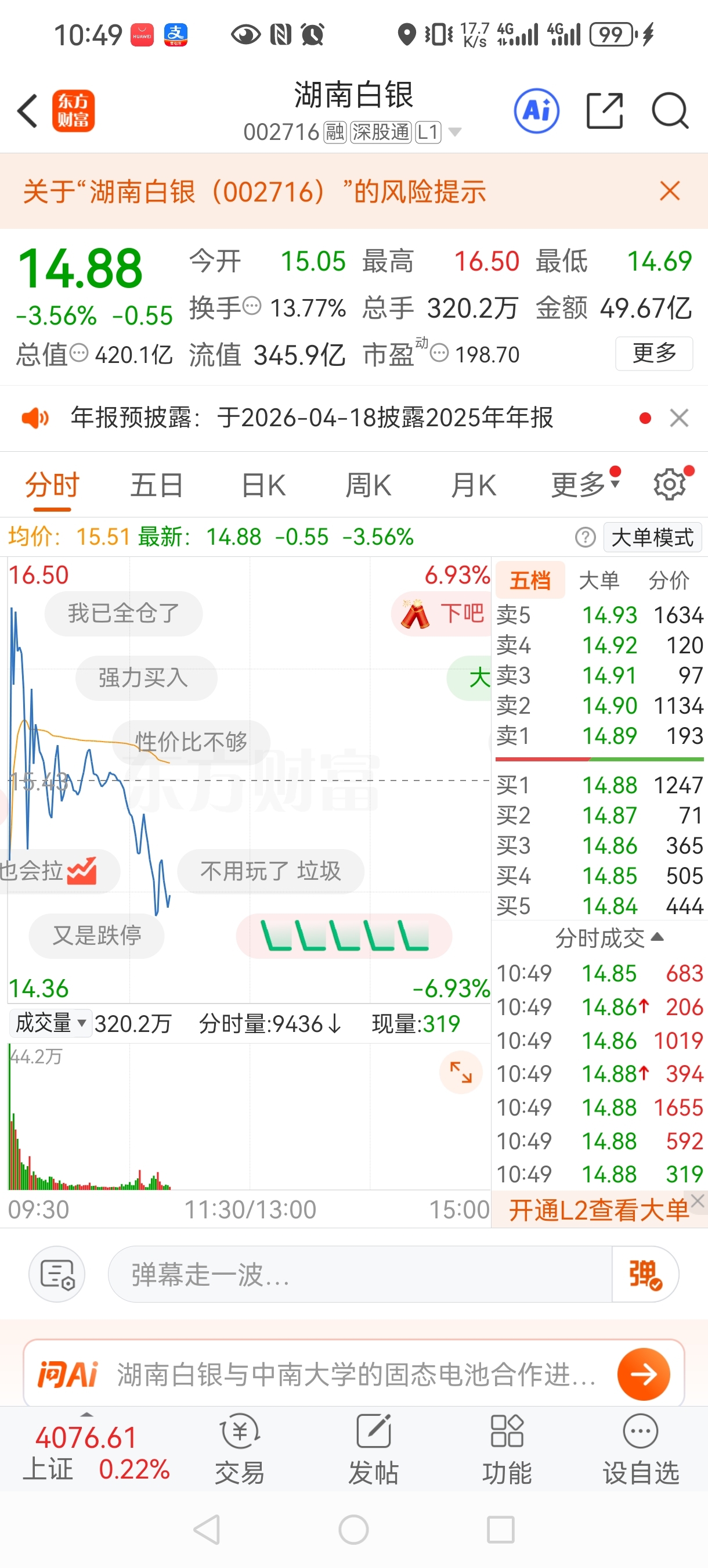 温馨提示: 1.根据《证券法》规定,禁止编造、传播虚假信息或者误导性信息,扰乱证券市场;2.用户在本社区发表的所有资料、言论等仅代表个人观点,与本网站立场无关,不对您构成任何投资建议。用户应基于自己的独立判断,自行决定证券投资并承担相应风险。《东方财富社区管理规定》