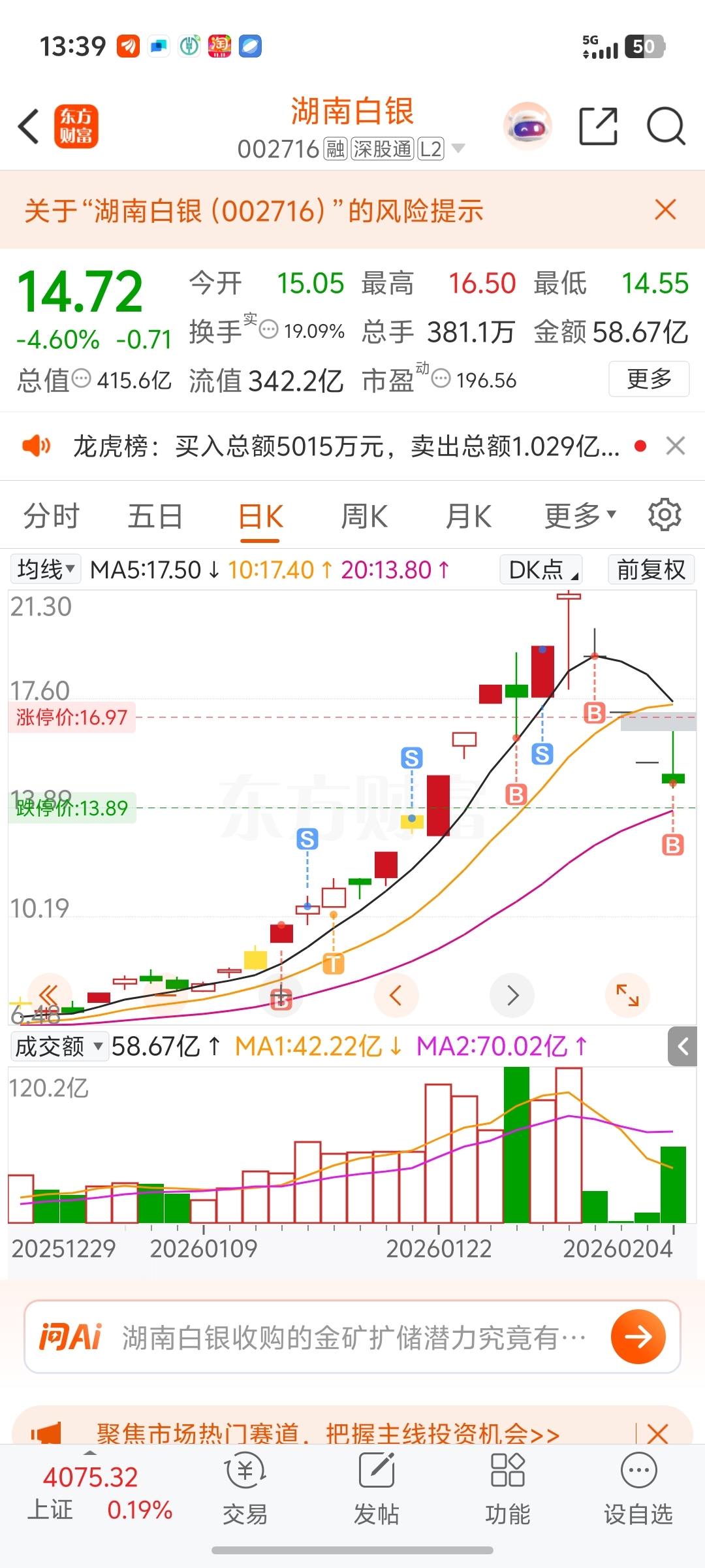 $湖南白银(SZ002716)$ 我懒的和你逃命,机会难得,这次白银期货跳水就和327国债事件差不多,comex根本就没有货,资本就在那里盲目做空,刚刚交割完,胆子大了起来,虽然白银现在是高位运行,近代如果不是冶银技术进步,以现在的工业用量白银价格至少是黄金的十倍,工业用银太炸裂了,太空光伏白银送上去就没办法回收了,用一点少一点,加仓位干