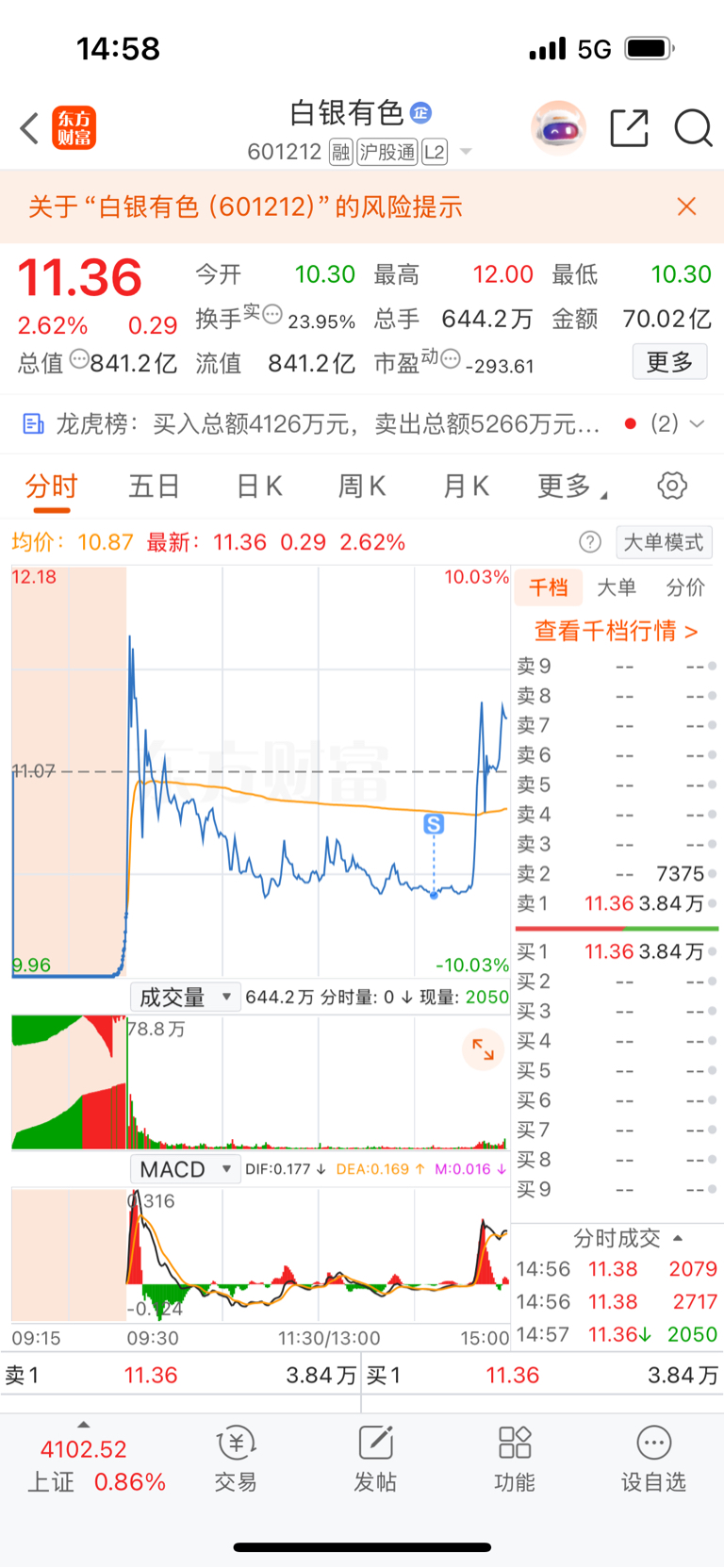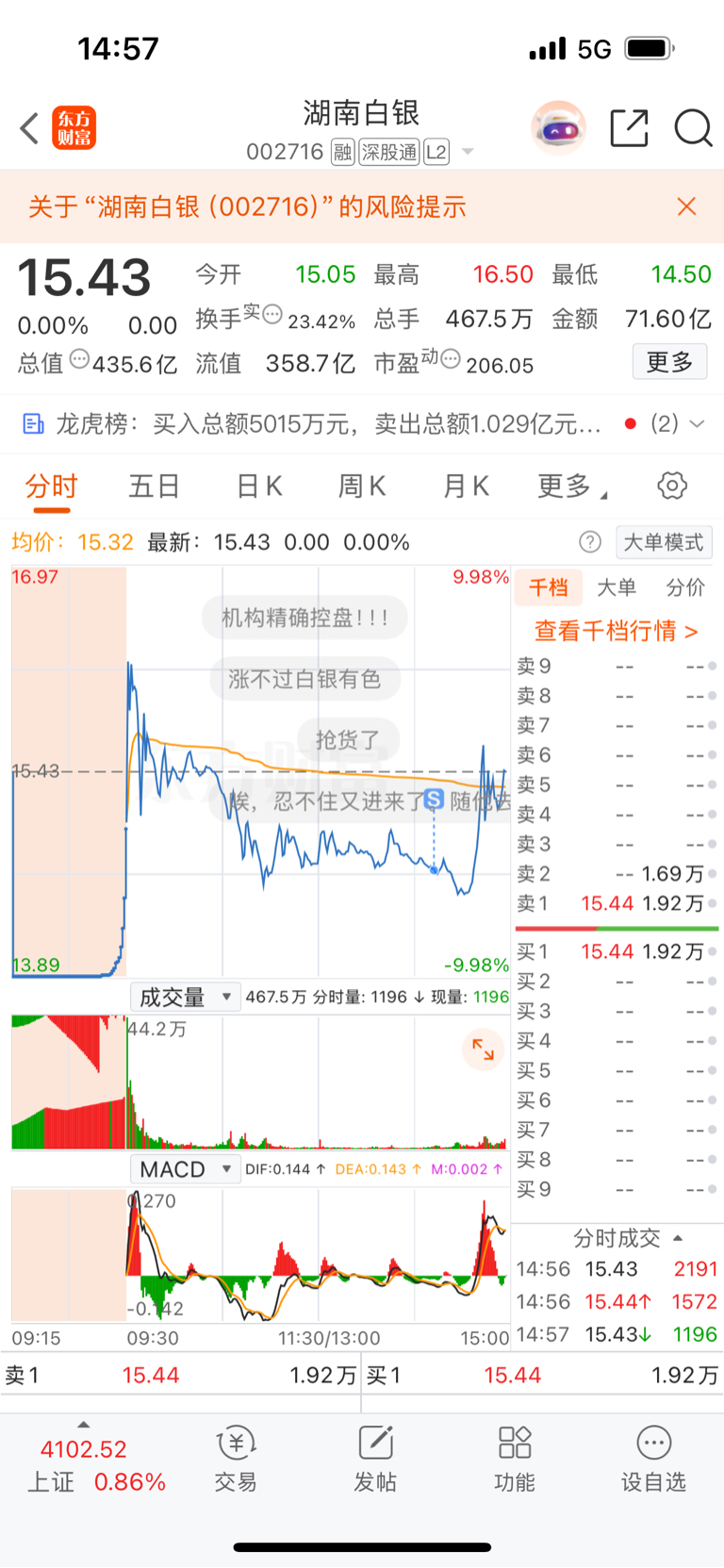 $湖南白银(SZ002716)$ $白银有色(SH601212)$ 虽然今天割肉了,但是lof精准逃顶