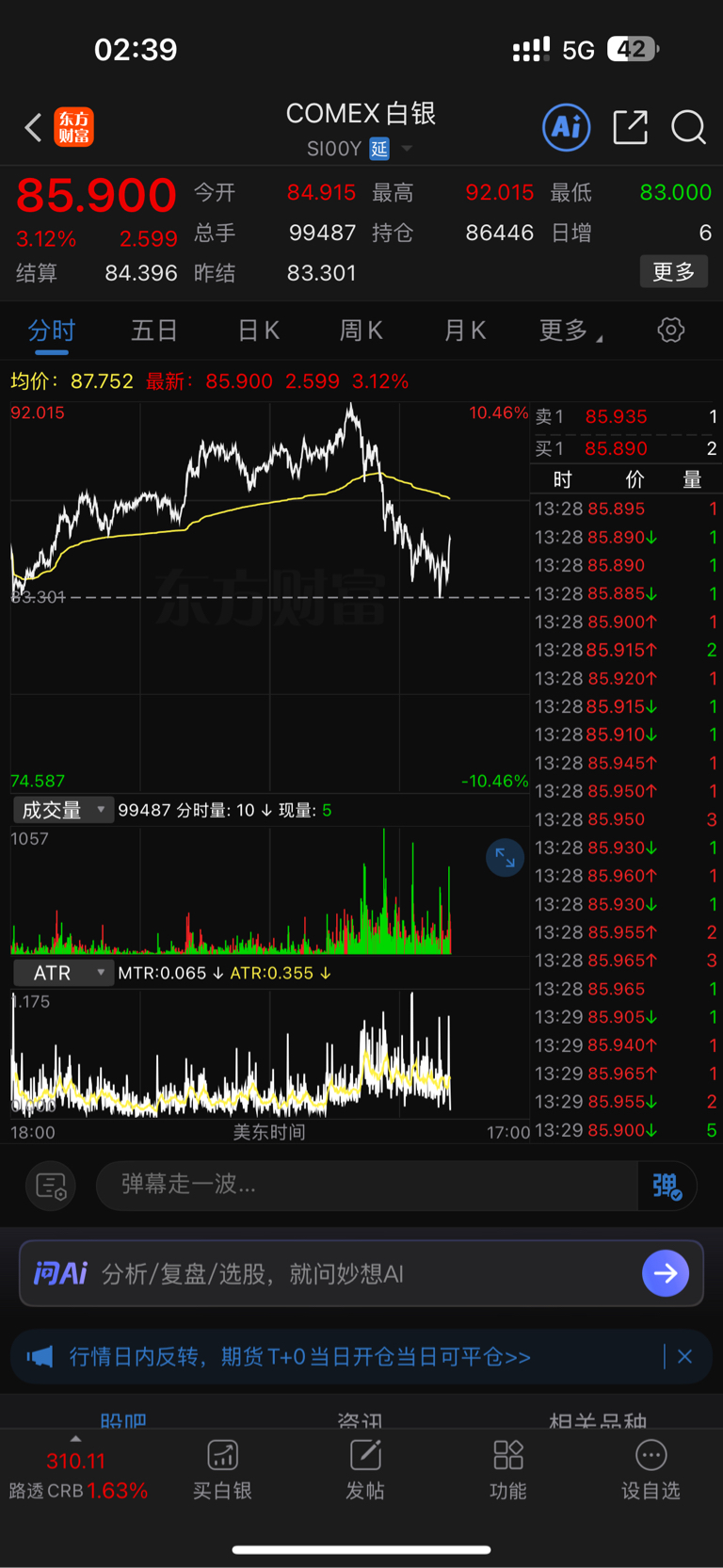 $湖南白银(SZ002716)$ 感觉今天危矣,纽银没站住90美元