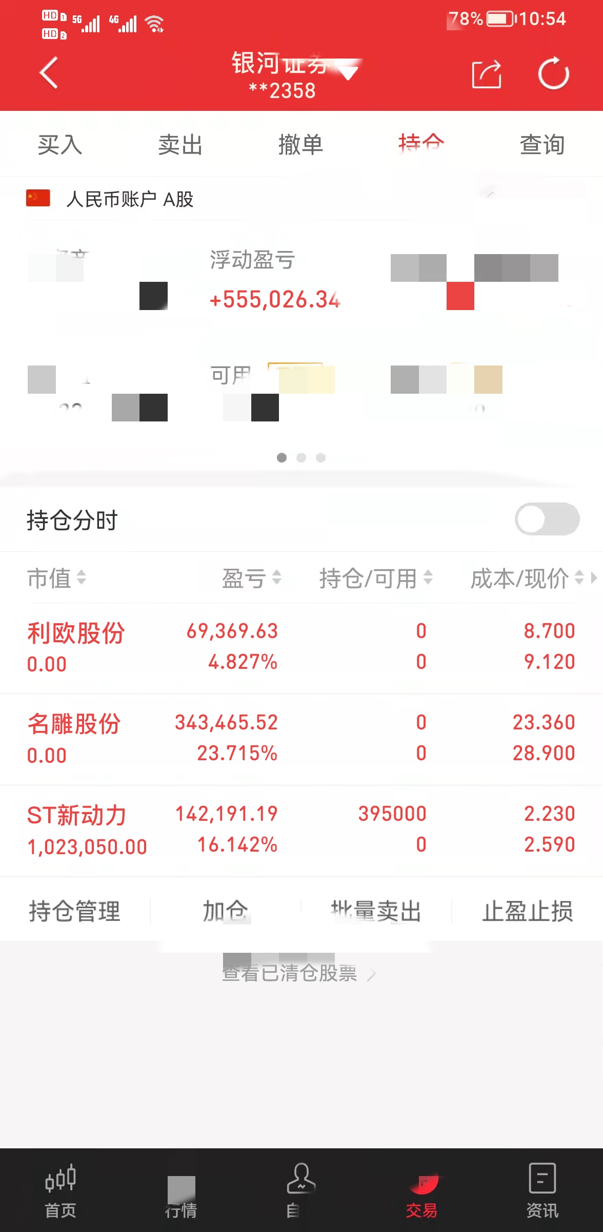 $湖南白银(SZ002716)$ 大家中午好,更新一下今日持仓,将利欧股份和名雕股份止盈出局,名雕这波先行选择落袋为安,拿下23个点太赞了!新进了新动力$遥望科技(SZ002291)$