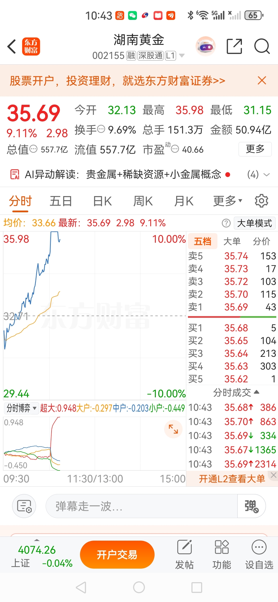 特大喜讯!湖南黄金涨停啦!