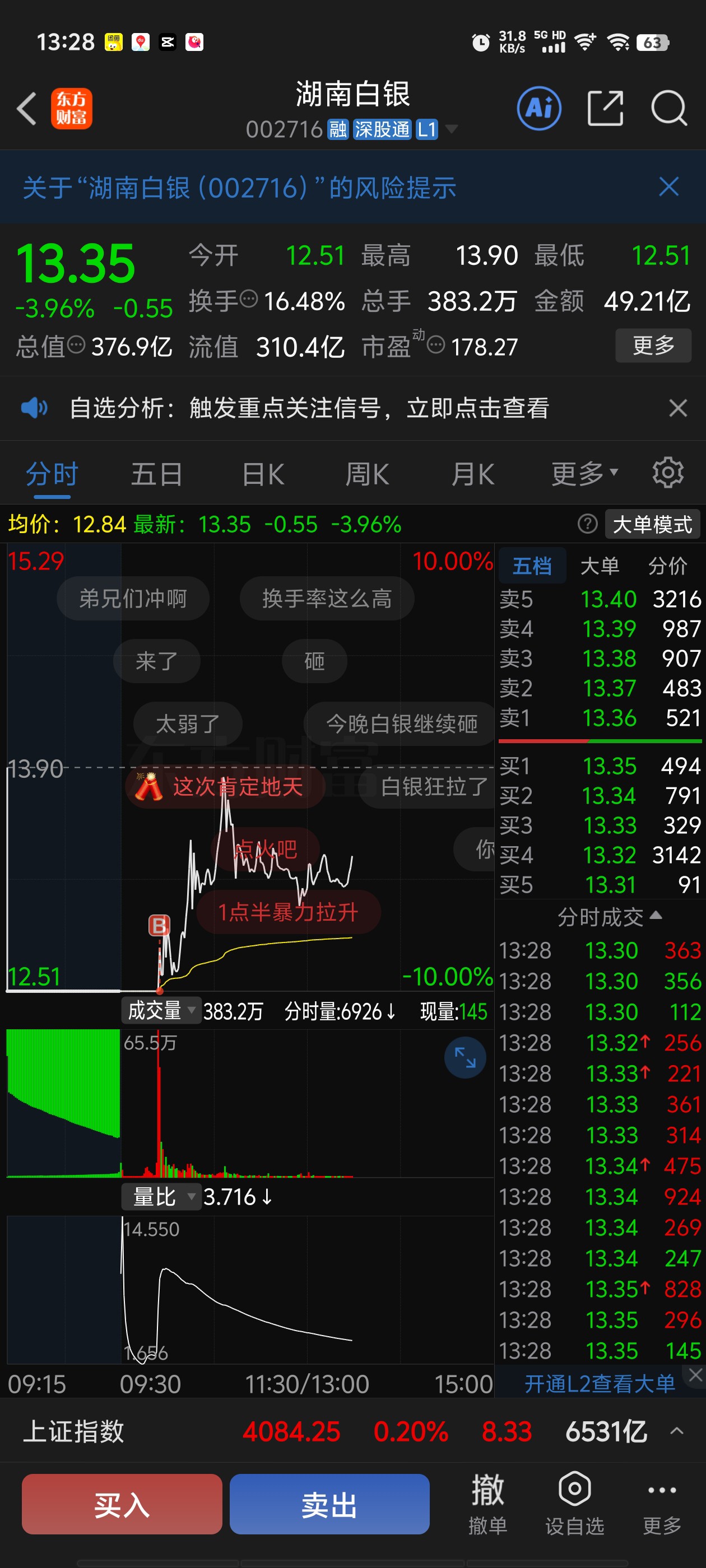 $湖南白银(SZ002716)$ 富贵险中求,今天能起来吗
