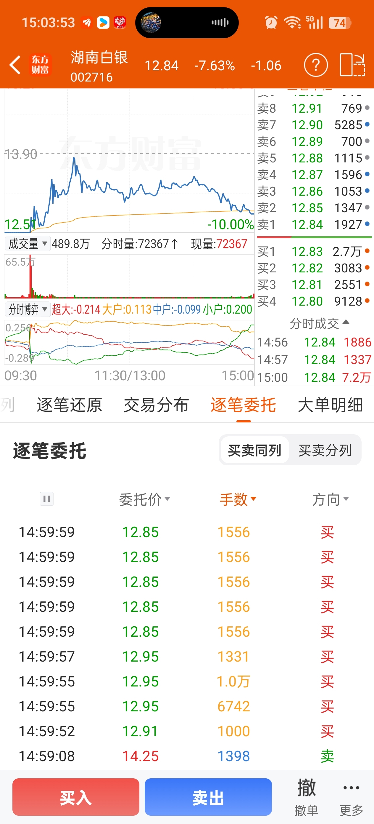 $湖南白银(SZ002716)$ 尾盘竞价抢买的记得星期一挂低点卖我