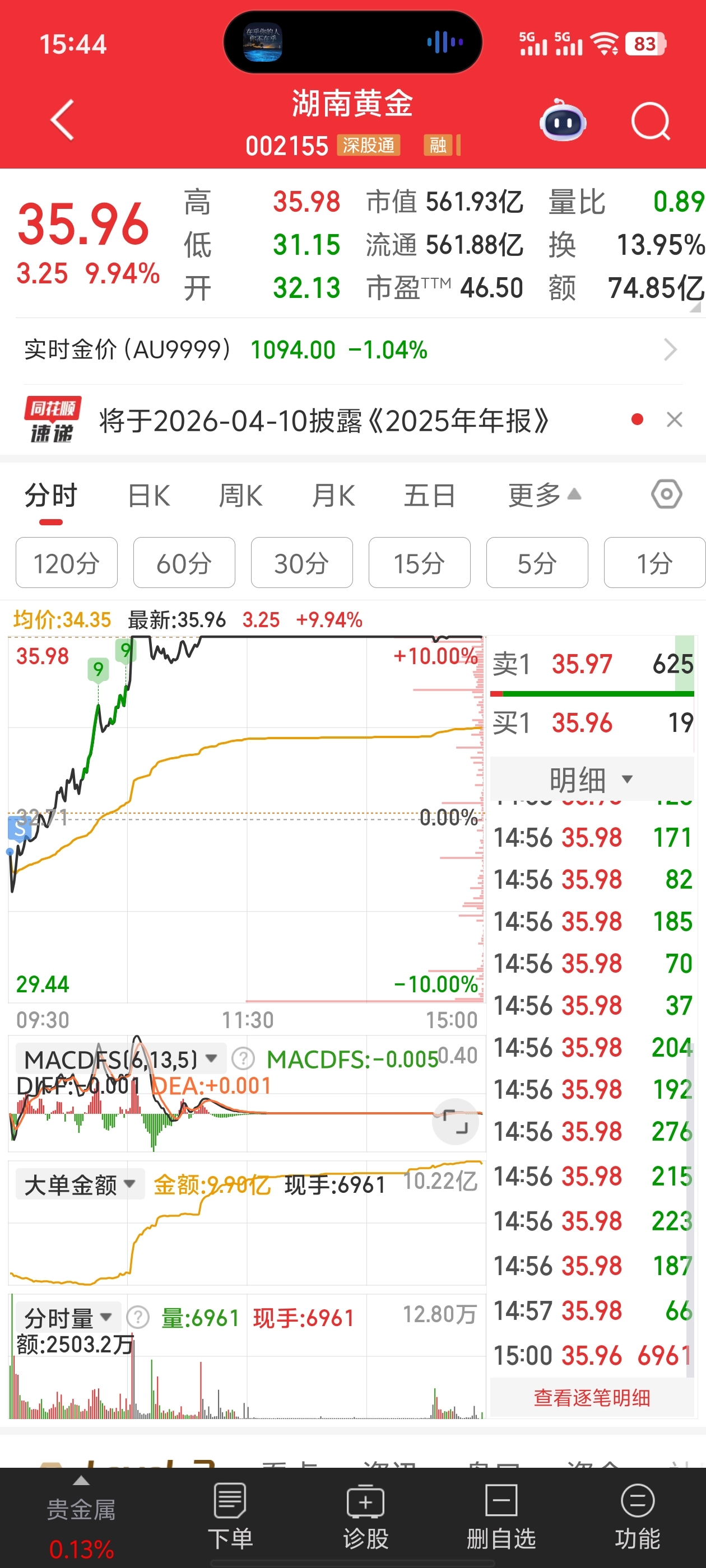 别瞎割肉了,湖南黄金昨天那么垃圾今天割完就涨停了。