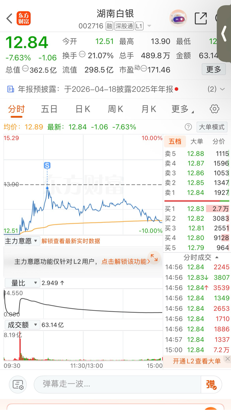 $湖南白银(SZ002716)$ 不知道是对是错