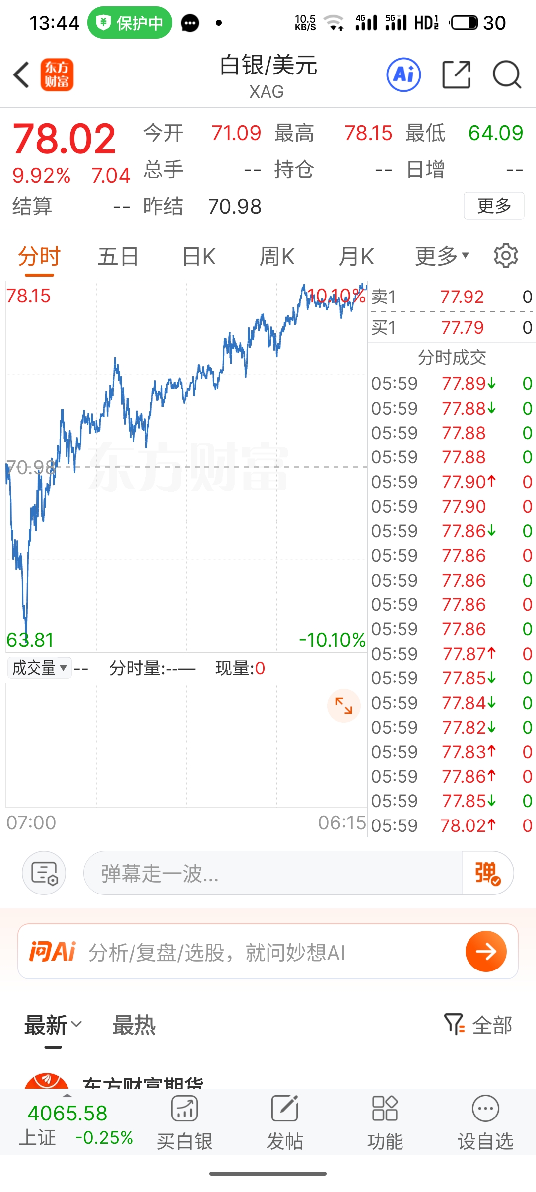 $湖南白银(SZ002716)$ 现货白银大涨10%