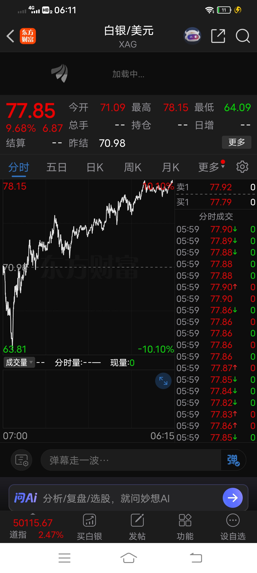 $湖南白银(SZ002716)$ 周一高开五六个点。然后大单涨停