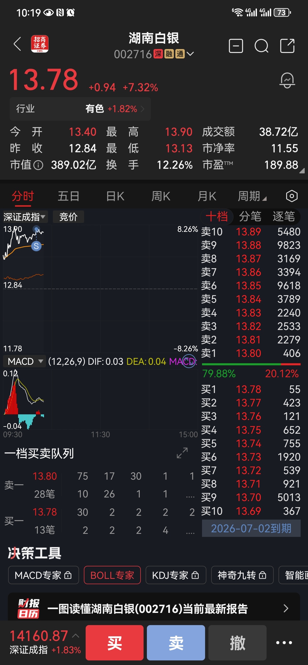 格局到刚才,还是没涨停,13.84卖出了。