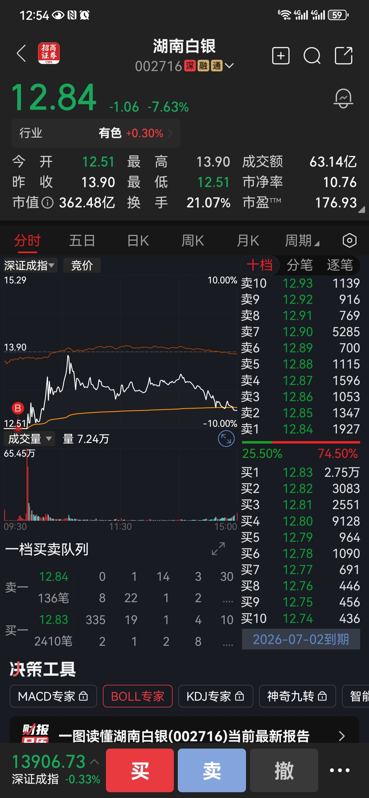 因此,周五跌停价12.51时,我就拿了湖南白银。