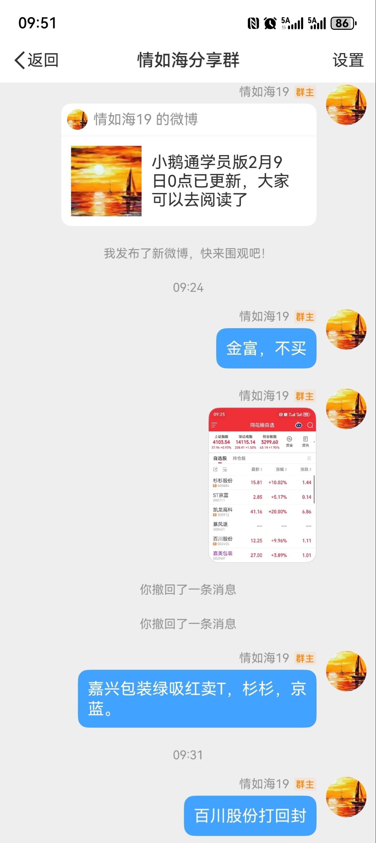 $湖南白银(SZ002716)$ 2月9日9点28分:1.单点8天嘉兴包装绿吸红卖T。嘉美包装单点8天给你们T,也翻倍了,恭喜全仓吃肉[太阳]