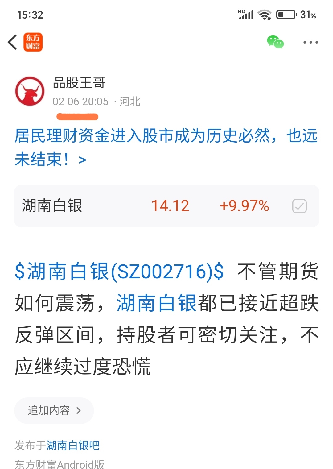 湖南白银,突发反弹