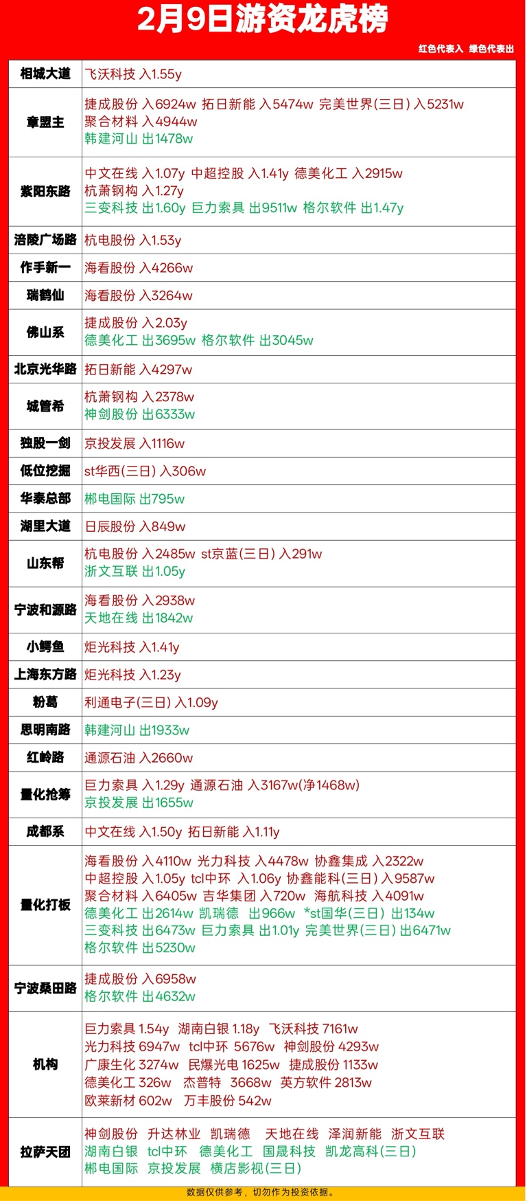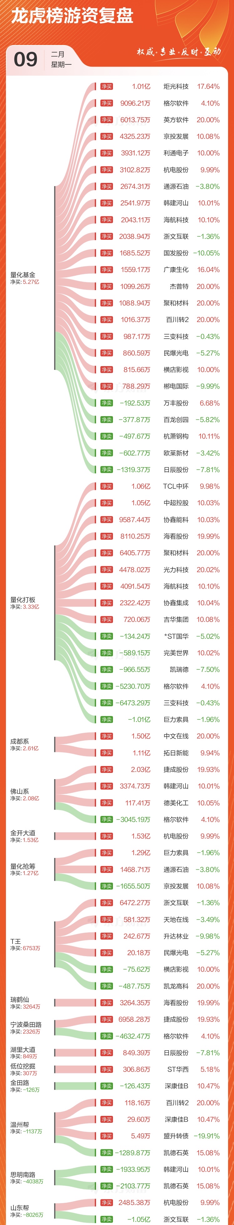 2月9日 游资龙虎榜&各大板块涨停个股复盘