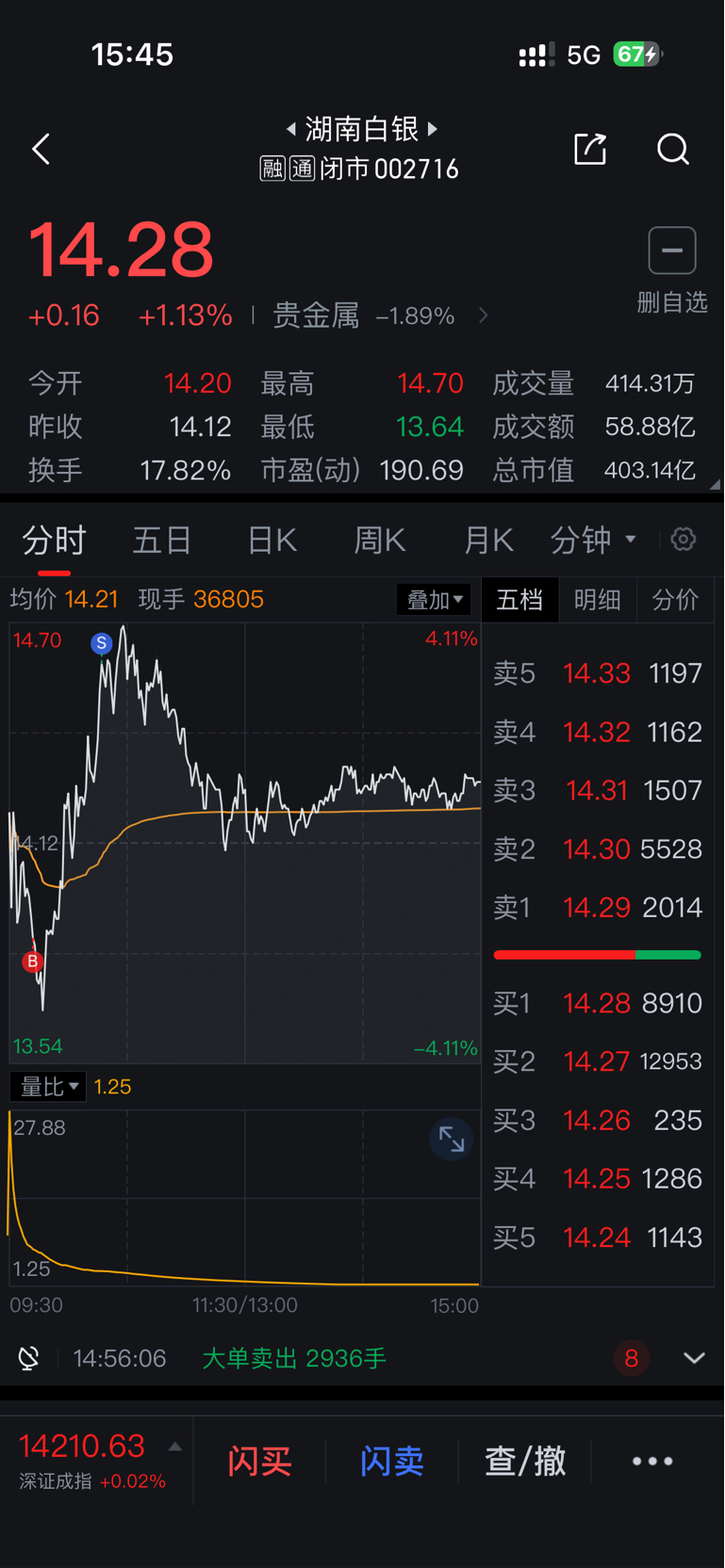 $湖南白银(SZ002716)$ 操作越来越难,长期看好