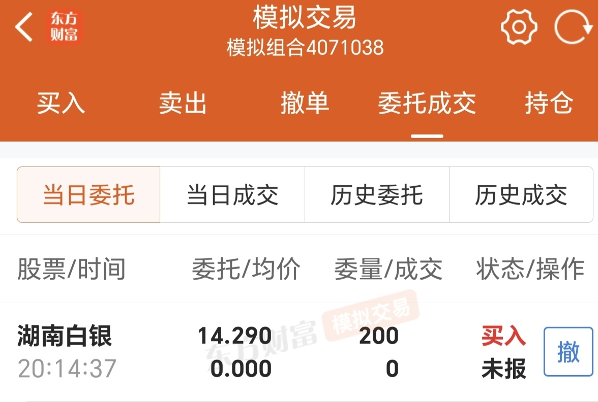我模拟交易委买了200股,明天可能还会加仓。量比1.25,外盘多出10万多,收盘