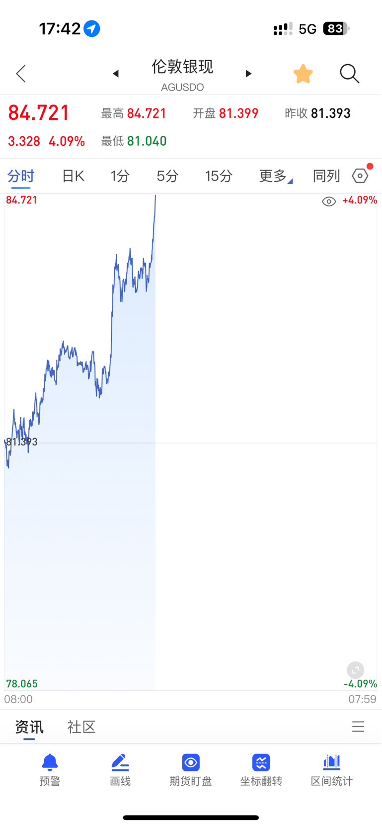 $湖南白银(SZ002716)$ 今晚站上90美元1盎司