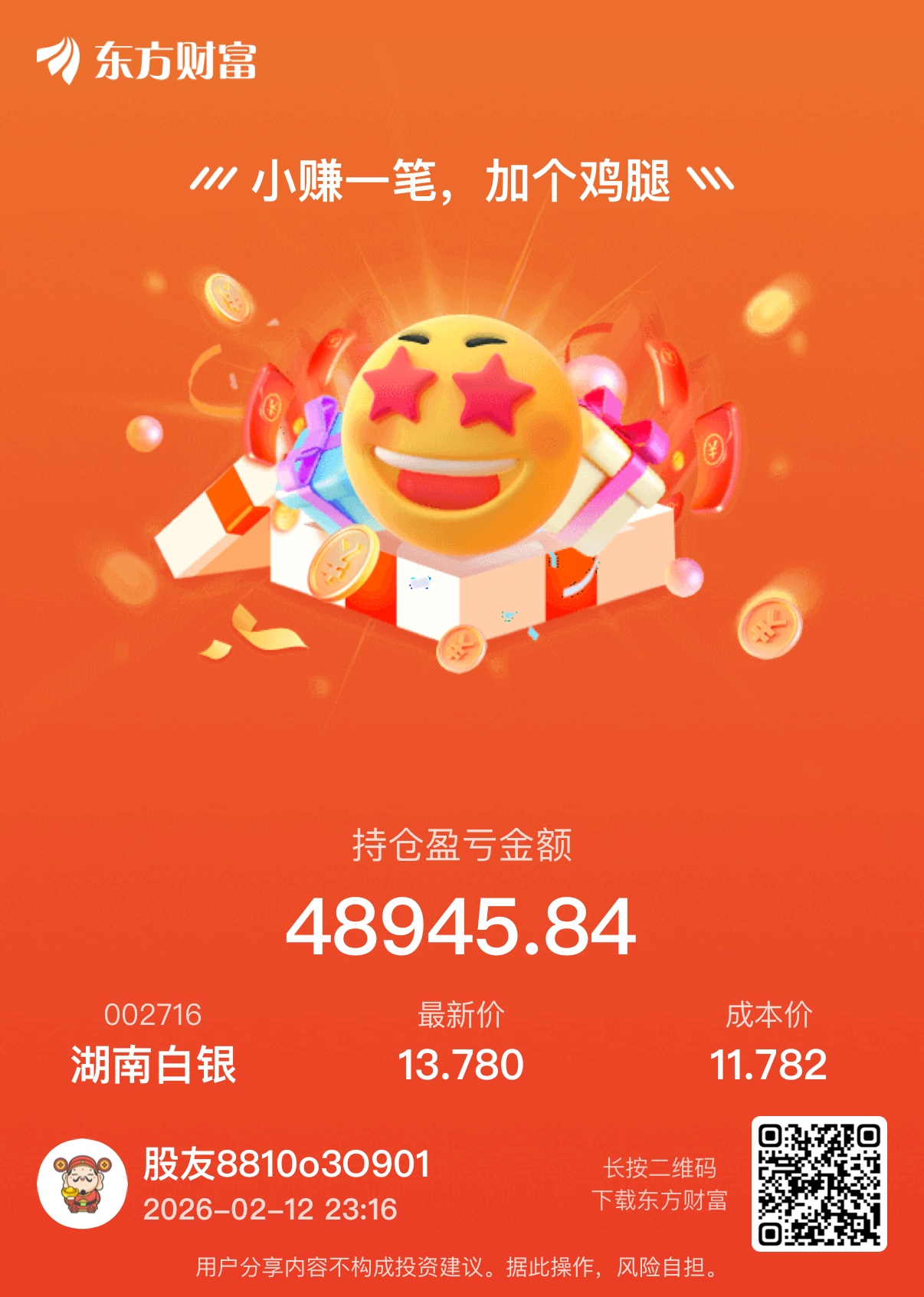 温馨提示: 1.根据《证券法》规定,禁止编造、传播虚假信息或者误导性信息,扰乱证券市场;2.用户在本社区发表的所有资料、言论等仅代表个人观点,与本网站立场无关,不对您构成任何投资建议。用户应基于自己的独立判断,自行决定证券投资并承担相应风险。《东方财富社区管理规定》