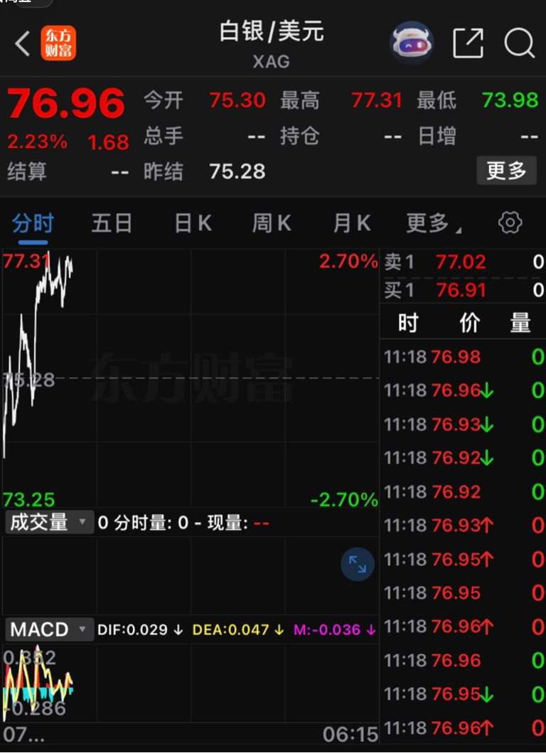 $湖南白银(SZ002716)$ 国际现货白银上涨二个多点